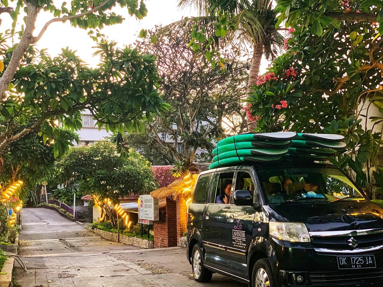 서핑캠프에서의 일주일 일과는 매일이 비슷하게 반복됐다. 전날 저녁 스탭들의 공지를 보고 다음날 일어날 시간을 알게 된다. 대부분 새벽 5시 30분이다. 잠도 덜 깬 상태에서 옷만 갈아입고 저벅저벅 보드를 가지러 간다. 묵직한 서핑보드를 머리에 이고 리쉬를 목에 감는다. 다 눈은 반쯤 감고 좀비들처럼 보드를 머리에 이고 있다. 서로 얼굴도 잘 안 보이는 어둑어둑한 새벽, 차 위에 서핑보드를 차곡차곡 싣고 봉고차를 타고 15분 정도 이동하면 서퍼들의 성지 꾸따 비치가 나온다.