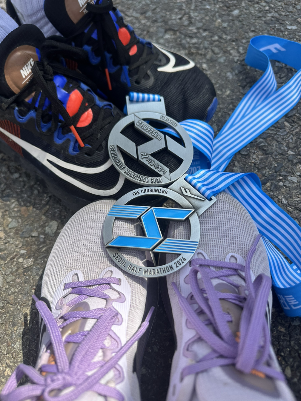 대회 시작 전 광화문 광장에 모인 러너들의 에너지에 압도되는 그 기분, 평소 차로 다니는 마포대교와 양화대교를 직접 내 두 발로 뛰는 새로운 해방감, 지나가는 모르는 사람들의 뜻밖의 응원, 처음 본 사람들이지만 모두가 함께 같은 목표를 향해 비슷한 고통을 느끼며 견뎌내는 두세 시간. 어디서도 느낄 수 없었던 신기한 도파민이 고통스러운 발 끝부터 정수리까지 짜릿하게 올라온다.