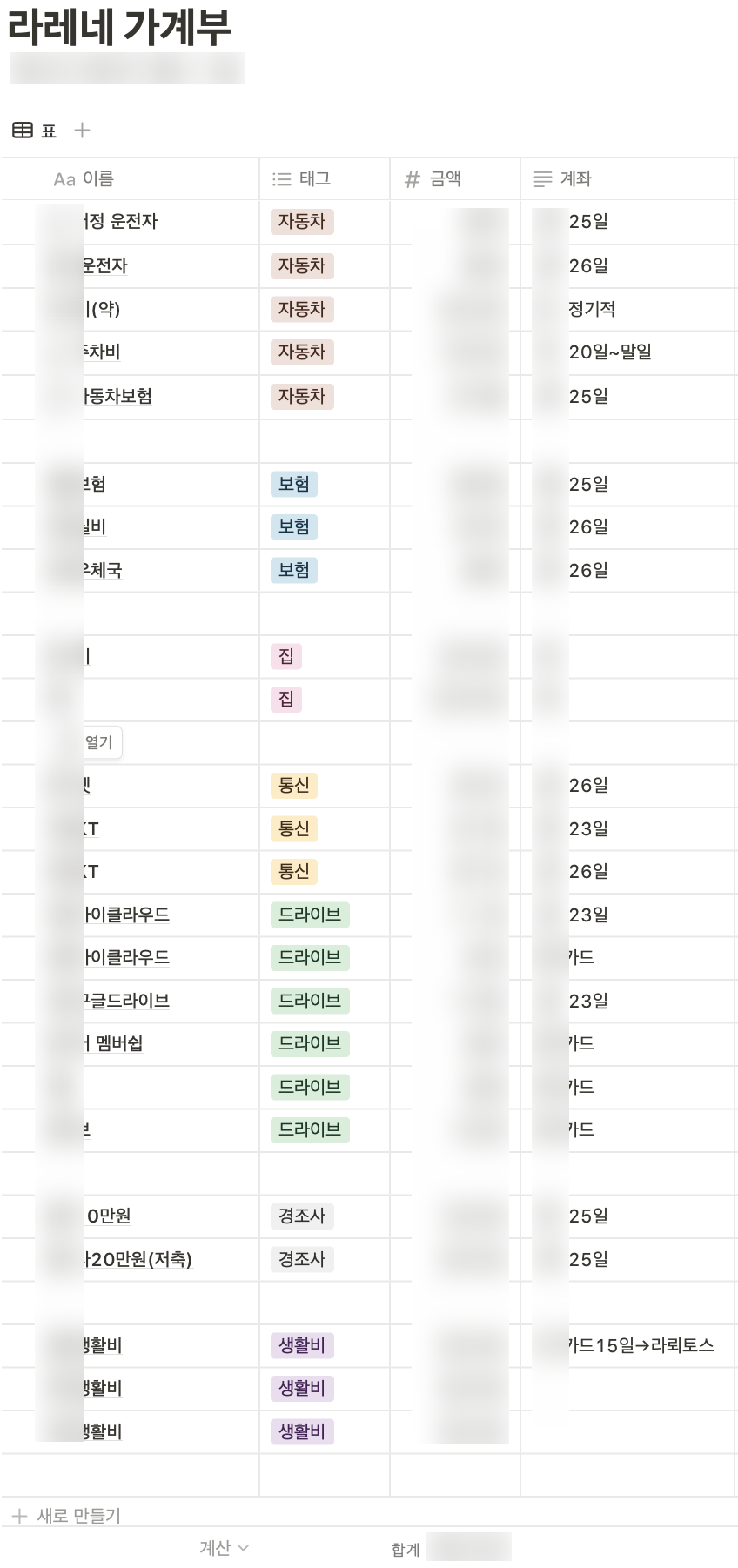 - 공용통장: 공용 식비, 집 관련 소비