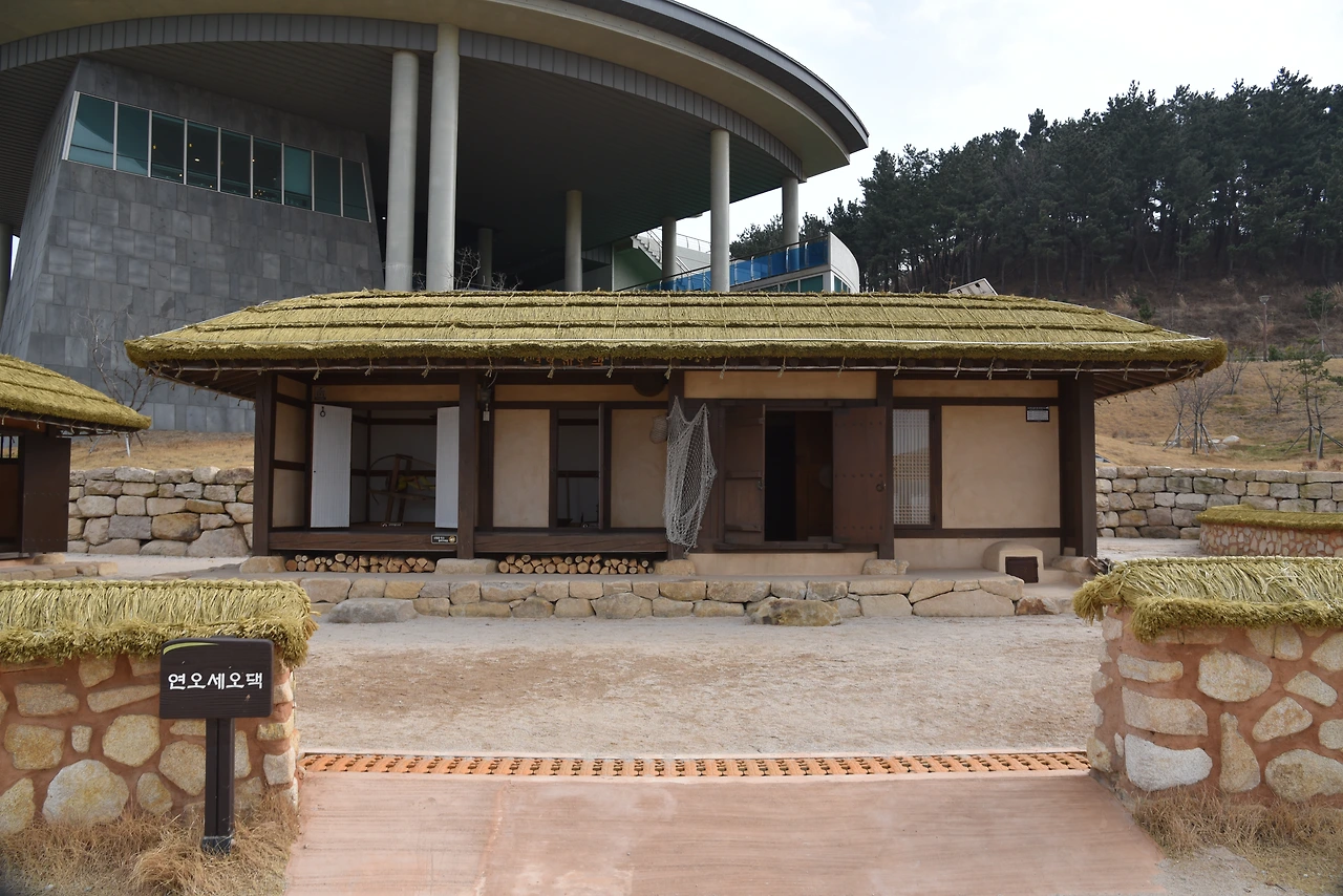 가장 중앙에는 연오세오댁이 있는데 초가 안에는 베틀이, 밖에는 어망이 있다. 어망이 있는 이유는 아무래도 “연오가 바다에 나가 해초를 땄다”는 것에서 착안한 것 같다. 그리고 베틀이 있는 이유는 세오가 비단을 짰다는 이유다. 연오세오댁 내부 형태는 삼국유사 이야기에 따라 적절하게 배치된 것 같다. 좌우로 도기야댁과 영일댁이 있는데, 원래 여기는 굴렁쇠, 줄넘기, 윷놀이, 제기차기와 같은 민속놀이를 무료로 체험할 수 있는 공간이다. 하지만 코로나19 때문에 운영을 못하는 것 같다.