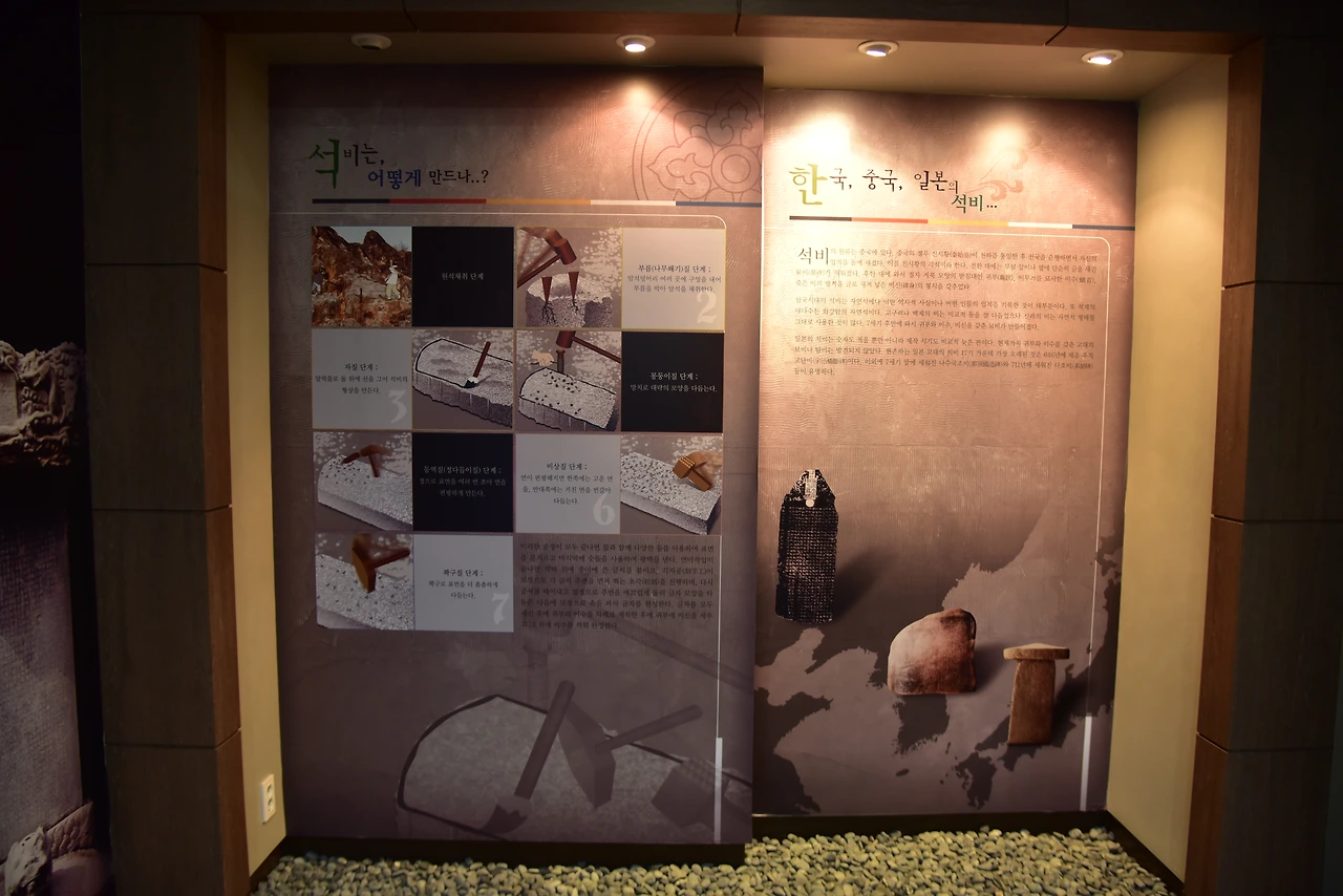 봉평리 신라비를 보고 제2전시실로 향했다. 여기는 우리나라 석비(石碑)는 어떤 종류가 있는지, 어떻게 만드는지 등이 나온다. 특히 삼국시대의 경우 역사 사실과 인물의 업적을 기록한 것이 대부분이라, 역사 사료에 기록되지 않은 내용을 보충하거나 사료 내용과 비교 분석할 수 있다는 점에서 매우 중요하다. 또한 삼국시대 역사사료는 조선시대와 비교하면 매우 부족한 것이 현실이라, 삼국시대 석비연구는 평범한 사람의 입장에서는 사소한 내용이라고 하더라도 글자 하나하나가 매우 중요한 의미를 지닌다.