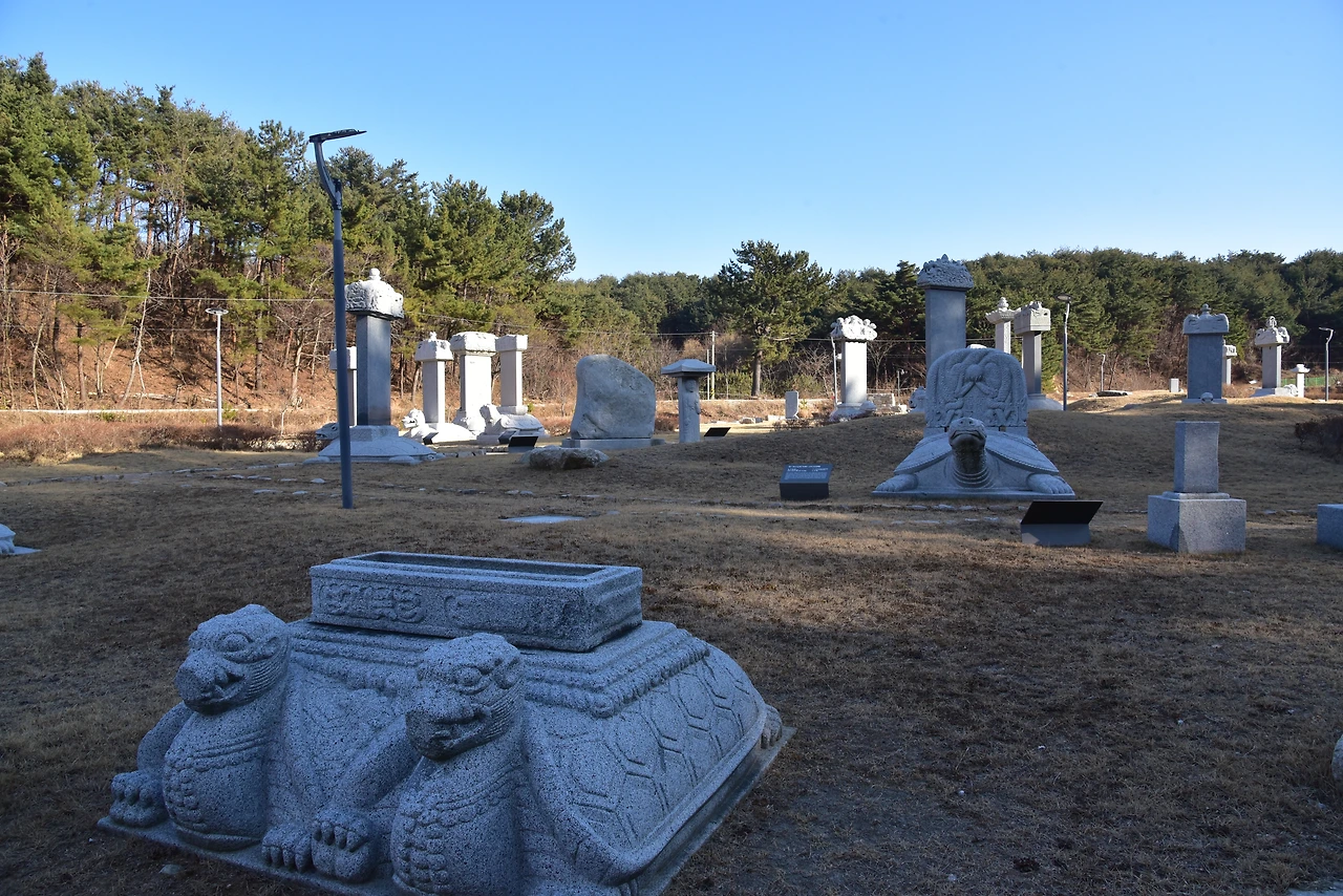 이 외에도 북한산 신라 진흥왕 순수비. 명활산성작성비, 이차돈순교비, 포항 중성리 신라비 등 33개 석비의 복제품들도 있다. 우리나라 비석을 자세히 보면 비석 밑에 거북이가 있는 게 많다. 심지어는 쌍 거북이도 있는데 전문용어로는 귀부(龜趺)로 중국 당나라의 전통을 받아들인 것이다. 거북이는 장수의 상징이기 때문에 비의 영원성을 표현하기 위해서라고. 우리나라에서 가장 오래된 거북받침돌은 국보 제25호 신라 제29대 태종무열왕릉의 비다. 안타깝게도 태종무열왕 비문은 전하지 않는다. 귀부로 된 비석은 고려시대까지 유행하다가 비석 받침돌이 대석(臺石)으로 바뀌면서 점차 사라졌다고 한다.