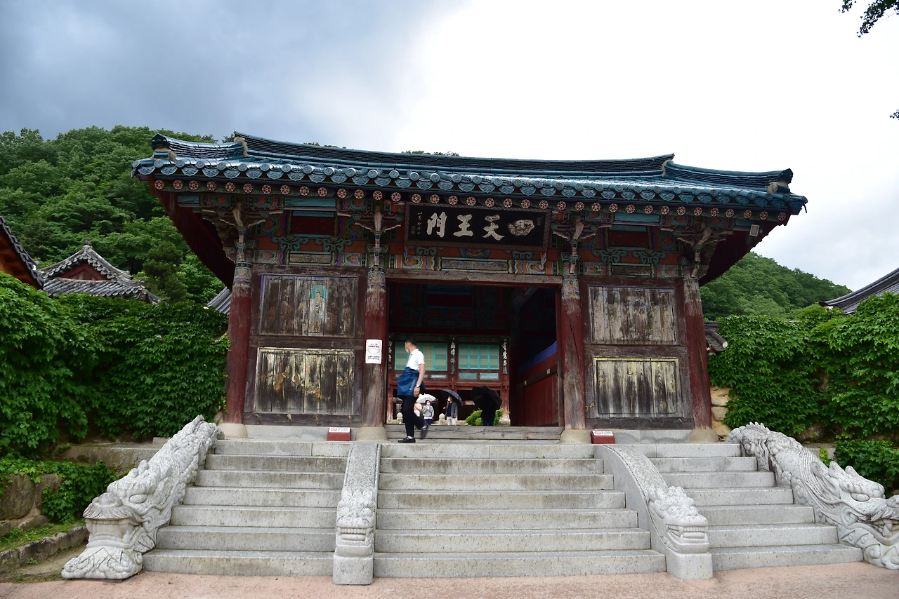 사천왕문. 낡은 기둥들과 벽면은 적어도 몇 백 년 전에 지은 사찰임을 암시한다.