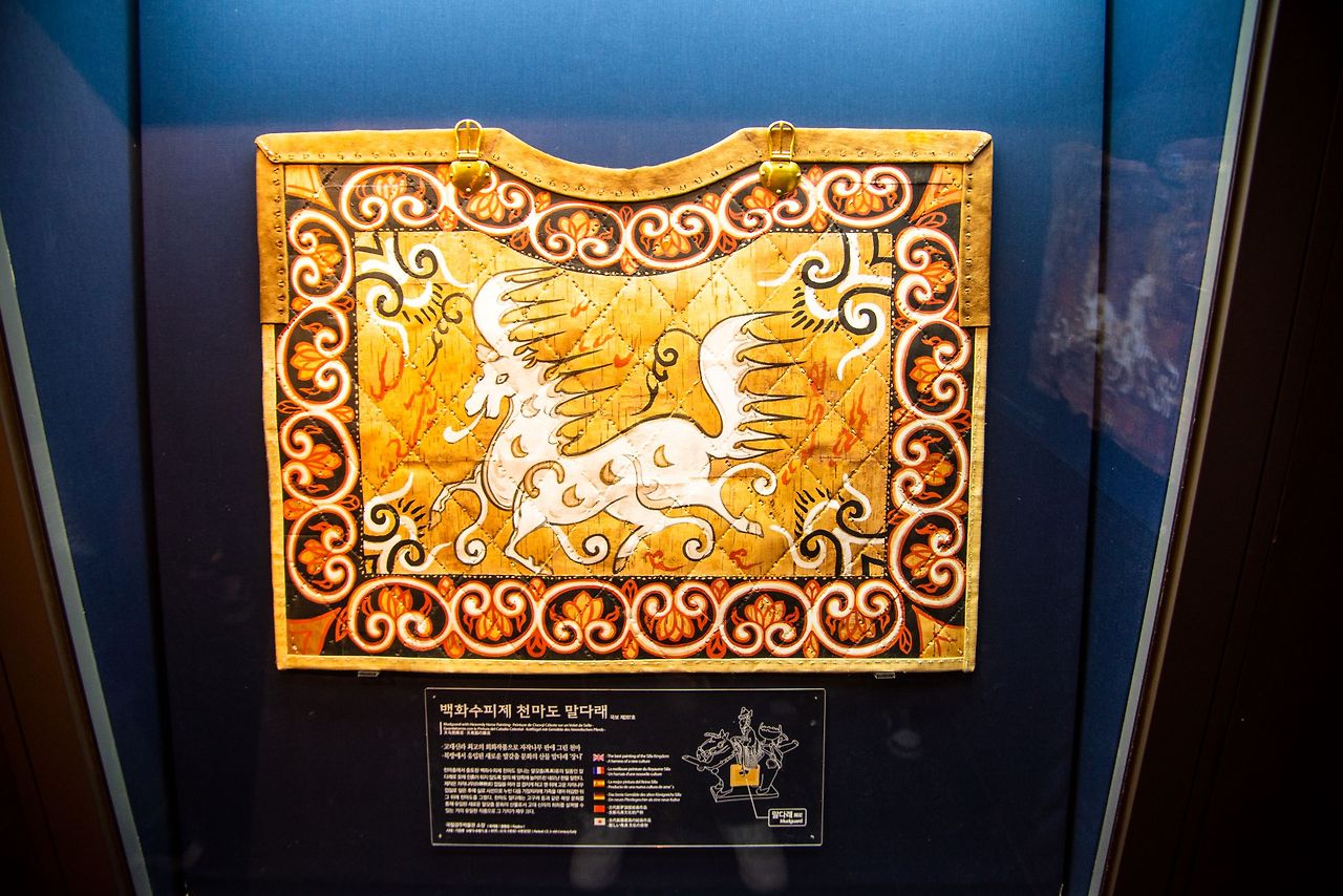천마도는 다행히 잘 수습되었다. 오늘날 역사 교육에서 빠질 수 없는 신라 유품이다. 천마도 외에 신라의 대외교류와 관련된 유물도 전시관에 자세히 소개되어 있으니 유심히 보자.