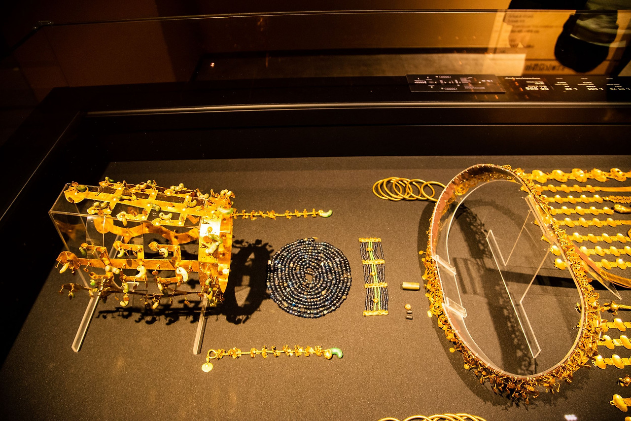 금관총 부장품. 위에 국보 제87호 금관총 금관이 있다.