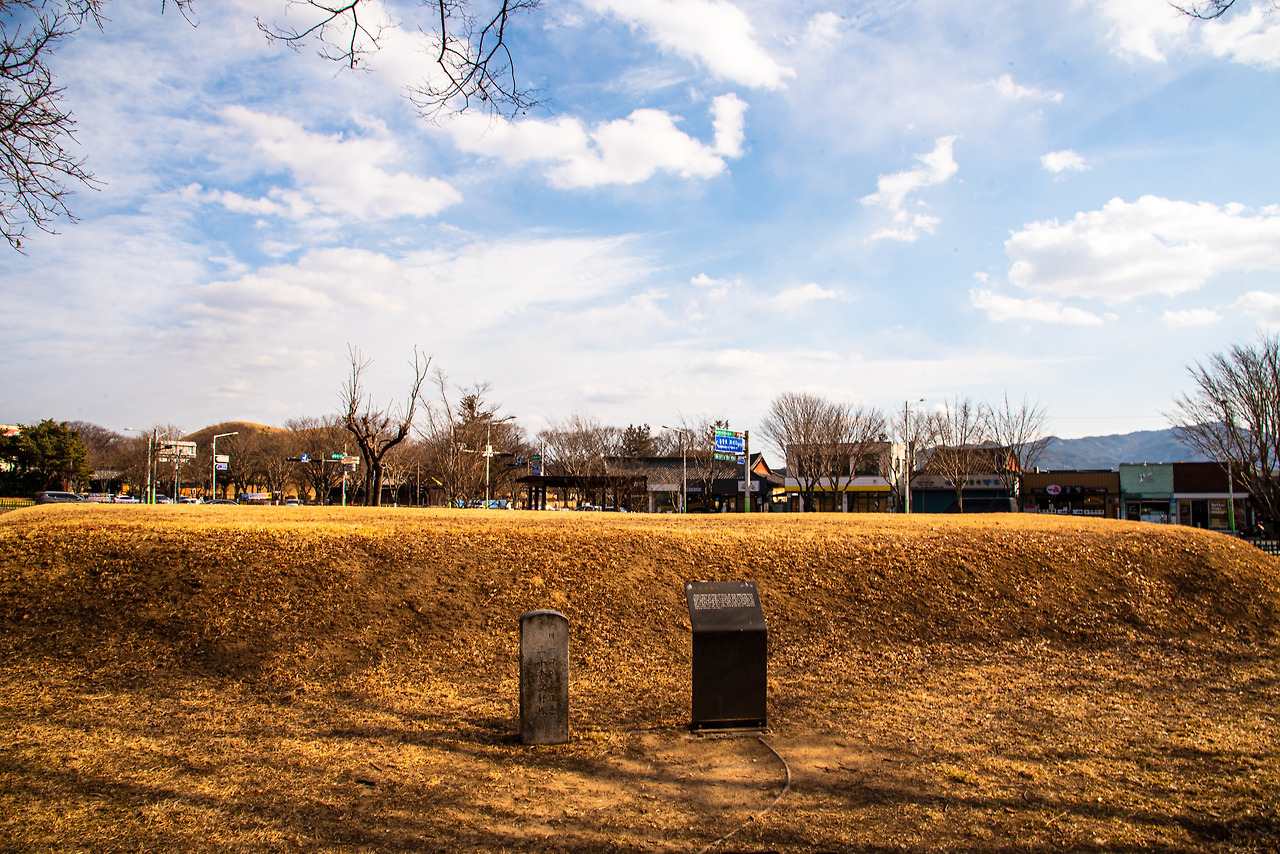 먼저 느티나무가 보이는 고분을 찾았다. 이름은 제125호 고분 봉황대(鳳凰臺). 둘레만 250m라 단일 고분으로는 가장 규모가 크다고 한다. 그런데 '대'라는 한자가 상당히 흥미로운데, 조선시대에는 여기를 무덤으로 생각하지 않고 풍수를 맞추기 위해 만든 인공산으로 여겼다고 한다. 그래서 선비들이 무덤인지 모르고 전망대처럼 여겼다고.