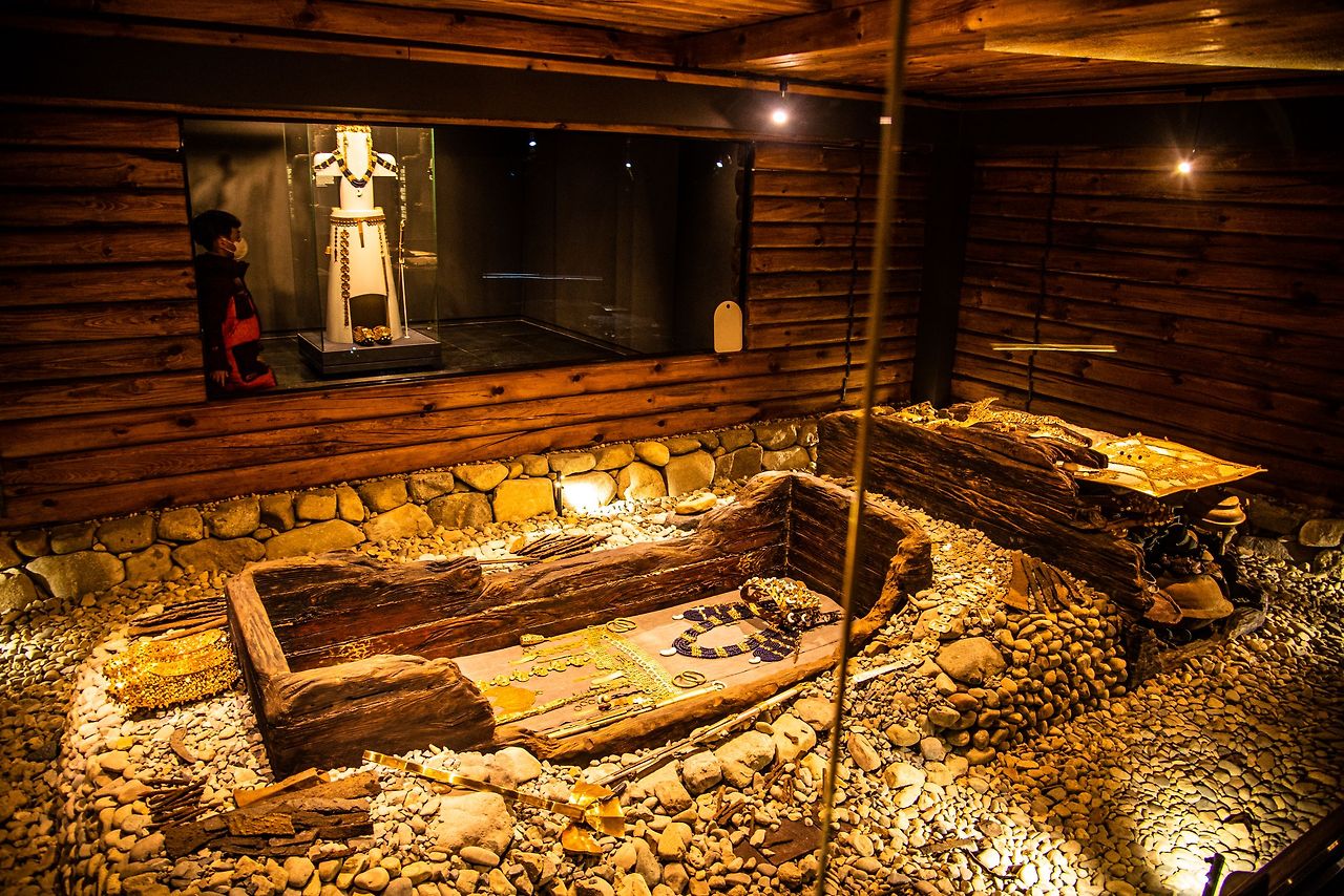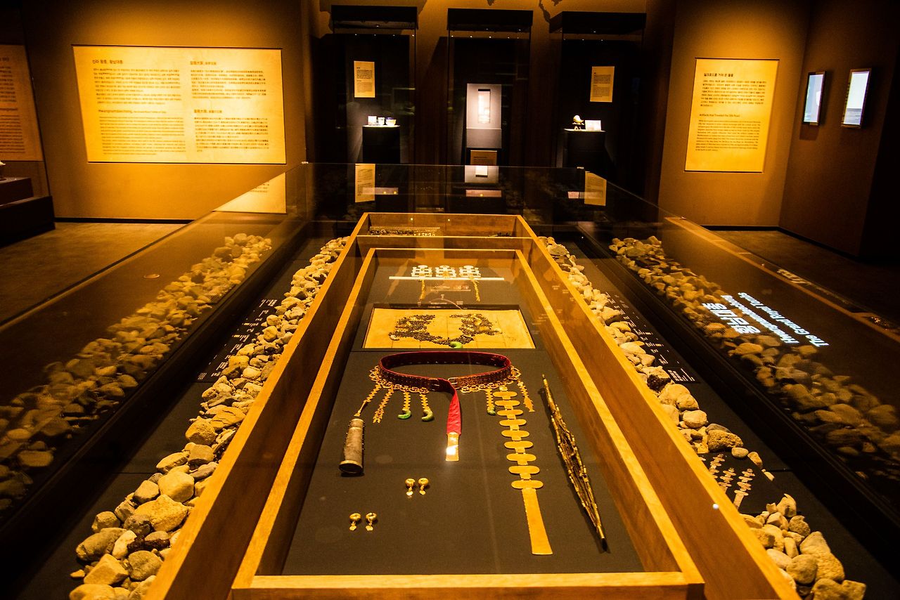황남대총에 대한 재미있는 내용은 바로 왕관이다. 왕관이 발견된 곳은 북분. 그런데 북분의 은제허리띠 꾸미개에 '부인대(夫人帶)'라고 적혀 있어서, 묻힌 이는 왕비일 가능성이 높다고. 반면 왕으로 추정되는 남분에는 상대적으로 덜 화려한 금동관이다. 왜 북분에 더 화려한 왕관이 부장품으로 남았는지는 아직까지도 학계에서 논쟁거리다.