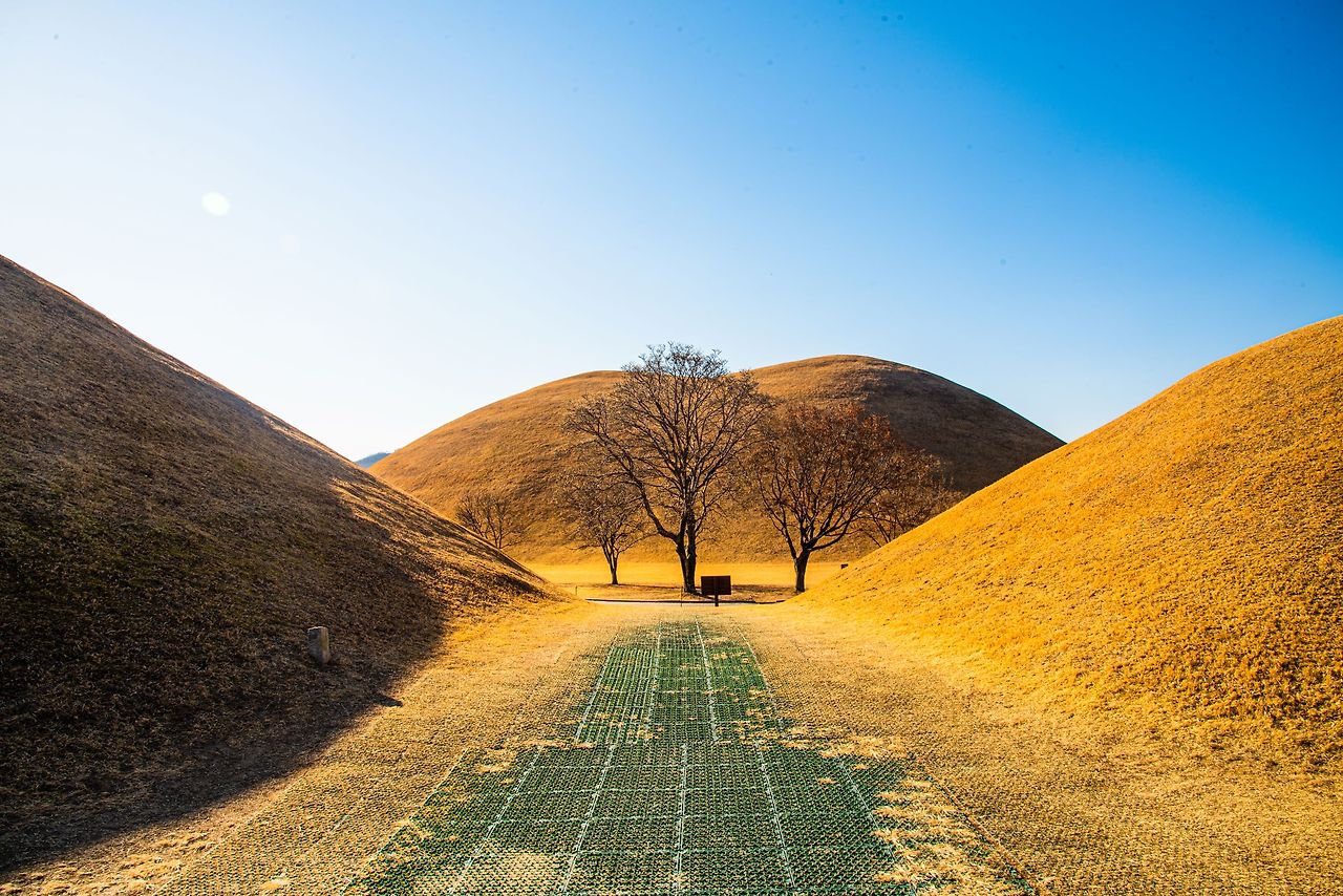 신라 왕가의 무덤들로 가득한 사적 제512호 경주 대릉원. 관광객들이 대릉원을 가면 입구에서 가장 가까운 미추왕릉을 마주하고, 2018년에 다시 개방한 천마총 내부 전시관으로가 가서 발굴 부장품들을 감상한 다음, 그 옆에 연못이 펼쳐진 황남대총을 감상한다. 마지막으로 대릉원의 또 다른 거대한 세 무덤에 둘러싸여 홀로 서 있는 작은 나무 앞에서 사진을 찍고 다른 관광지로 향한다.