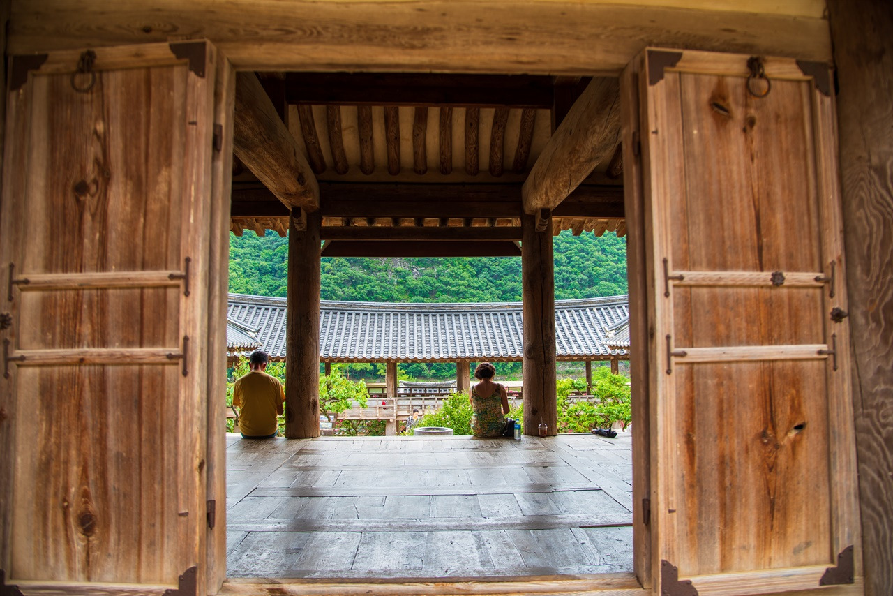 대신 병산서원의 강당인 입교당 시원한 마루에 앉아 만대루와 낙동강을 동시에 볼 수 있으니 참고하자. 나는 입교당 뒤편 창문에서 낙동강을 바라보았는데, 강당의 마루와 앞의 누각 그리고 누각 너머 낙동강이 잘 어우러진 느낌이다.