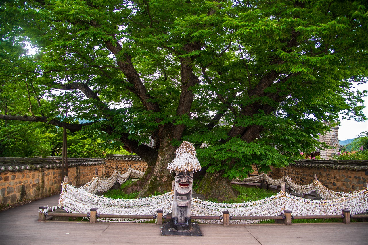 화경당 뒤편으로는 무려 600년이나 된 큰 나무가 있는데, 마을 중앙에 위치한 삼신당이다. 말 그대로 신성한 나무여서 그런지, 새끼줄 위에 사람들이 적은 소원들로 가득하다.