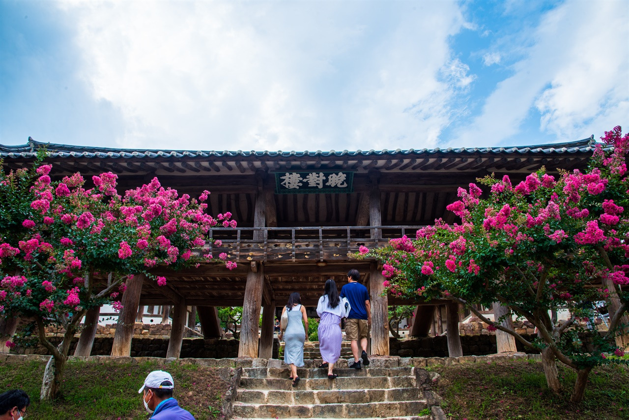 7월 배롱나무 분홍꽃들로 가득한 병산서원 앞