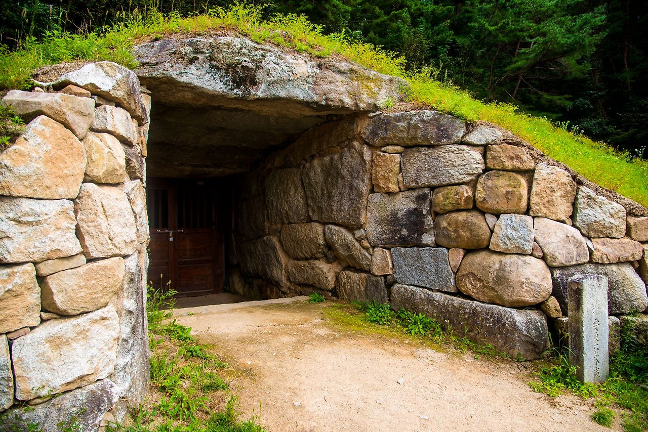 가까이서 본 선성현 객사(좌)와 보물 제305호 안동 석빙고