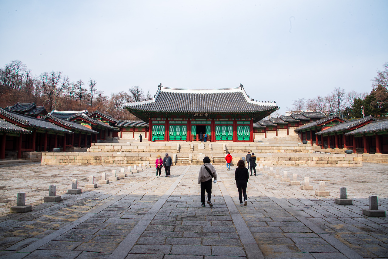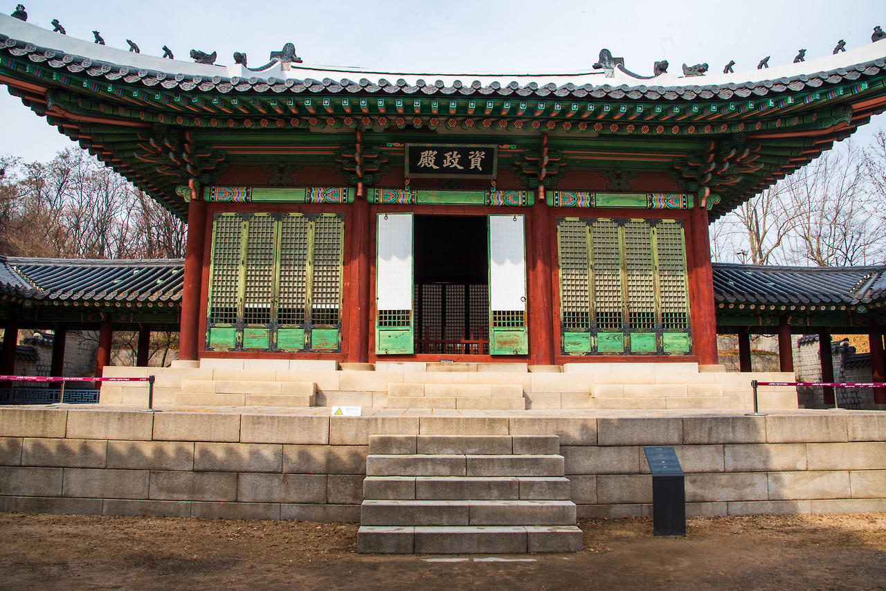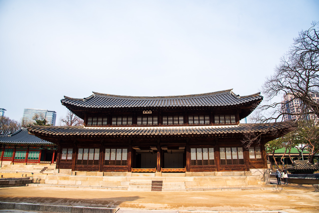 경희궁 숭정전. 일제강점기 이후 숭정전은 동국대 법당 정각원으로 이어진다. 이곳의 숭정전은 원 건물의 변형이 심해 1991년 새로 복원한 것이다.