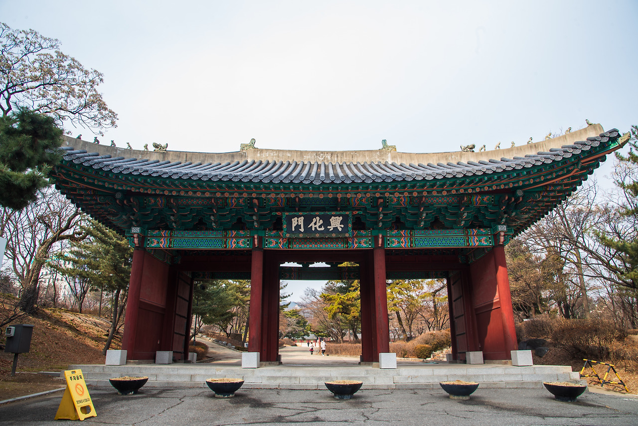 흥화문. 광해군 10년에(1618) 건립했던 그대로 모습이 남아 있다. 장충동에서 경희궁지로 돌아오기까지 56년의 세월이 걸렸다.