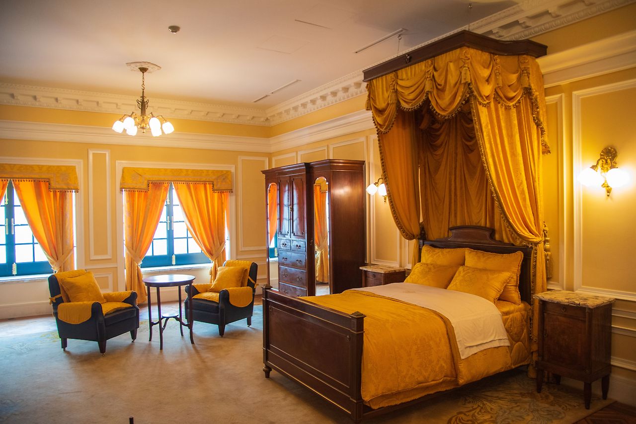 석조전 황제침실. 고종은 석조전을 선호하지 않아 함녕전에 머물렀다. 대신 영친왕이 일본에 볼모로 있던 시절 조선에 왔을 때 여기서 머물렀다.