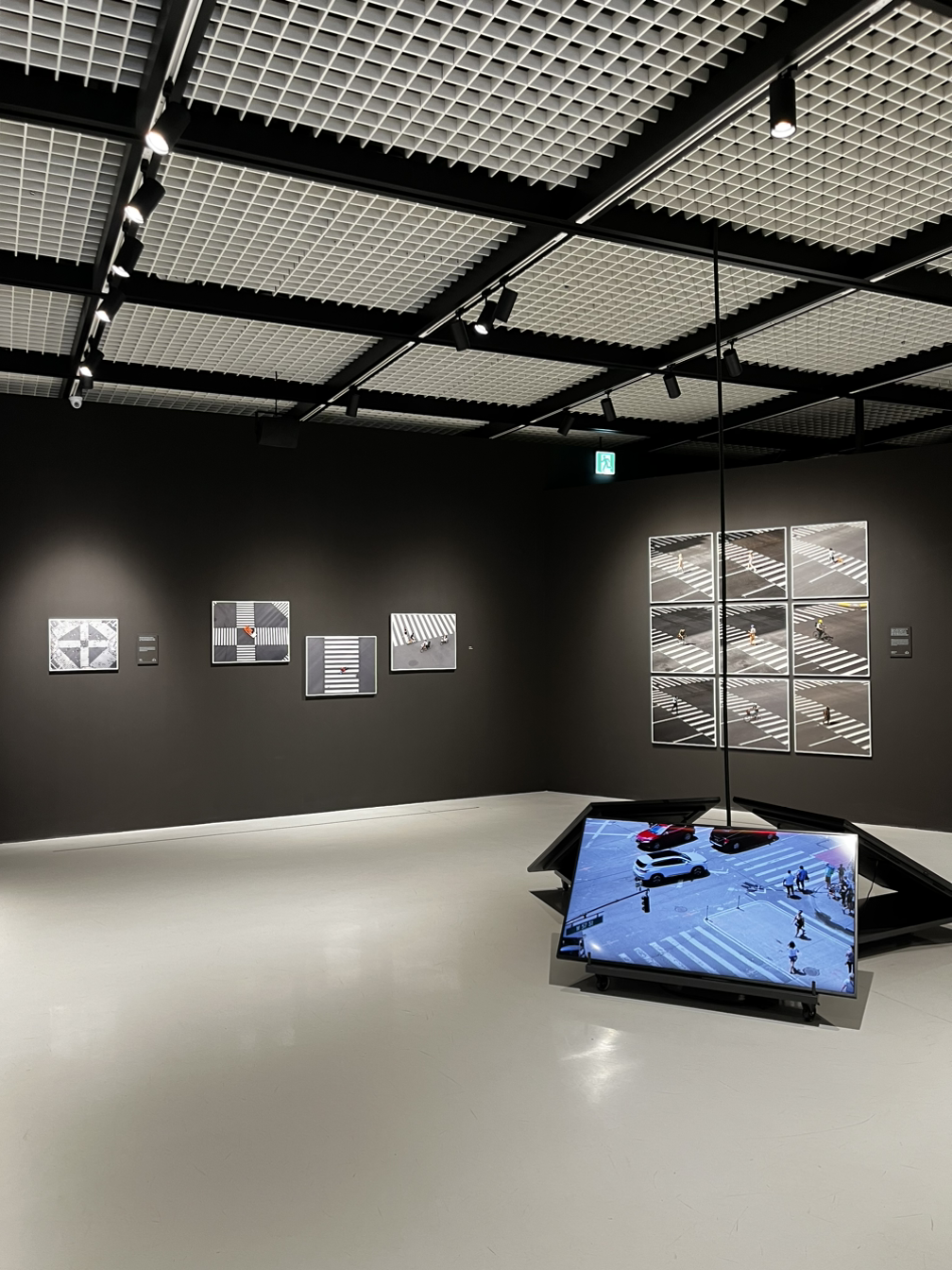벽면에 부착된 작품 외에도, 횡단보도를 건너는 행인들의 영상이 바닥에 전시되어 있었는데, 고정된 구도 안에서 사람들이 움직이는 모습을 보고 있노라니 마치 해리포터의 움직이는 사진을 보는 것처럼 느껴졌다.