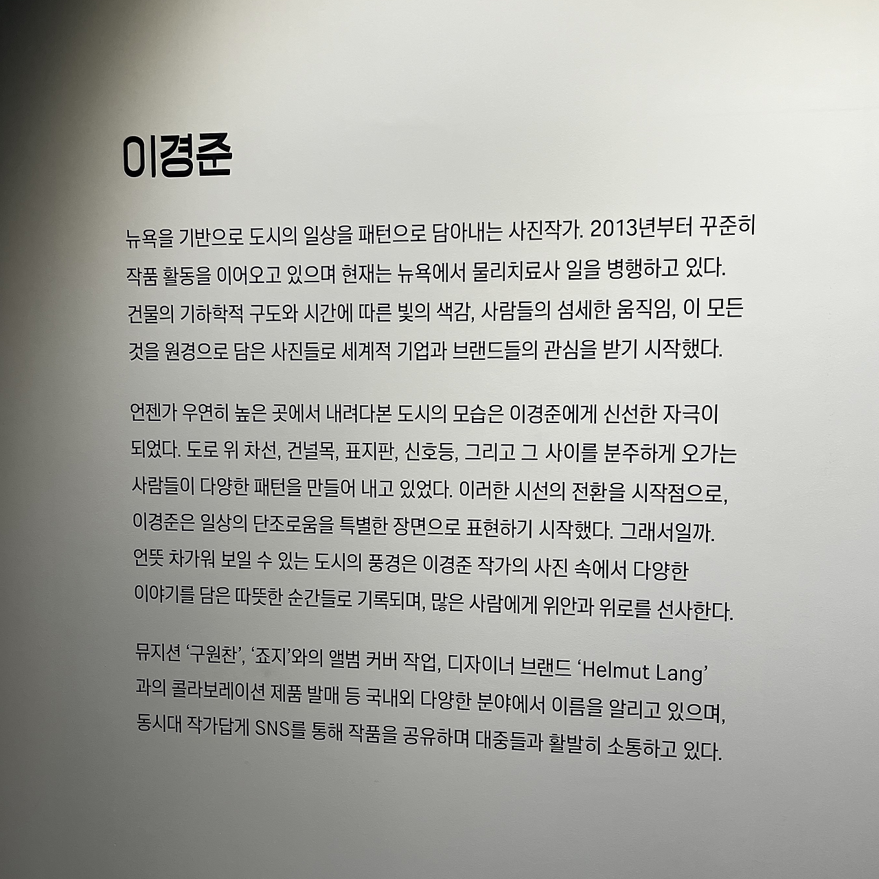 전시장에 입장하면 가장 먼저 이번 전시에 대한 간략한 소개와 작가 이경준에 대한 소개글을 만날 수 있다.