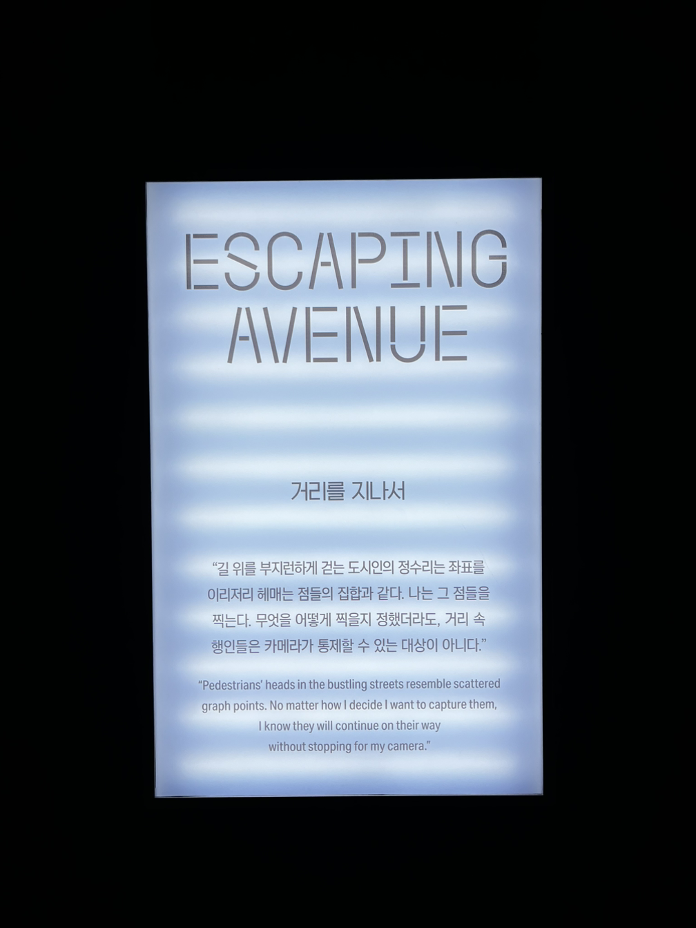 거리, 그리고 횡단보도, 그리고 그 위를 지나가는 사람들을 피사체로 삼은 작품들로 구성된 ESCAPING AVENUE 존이다.