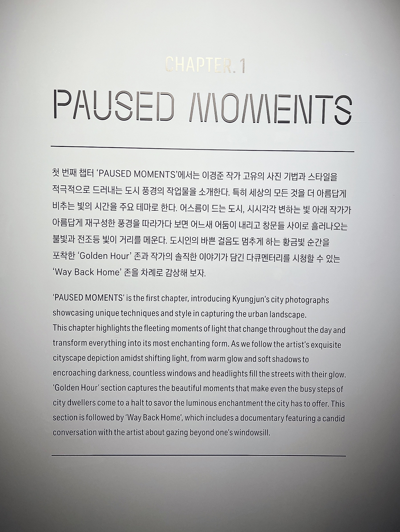 시시각각 변하는 빛을 머금고 탄생한 아름다운 도시 풍경을 선보이는 PAUSED MOMENTS 챕터.