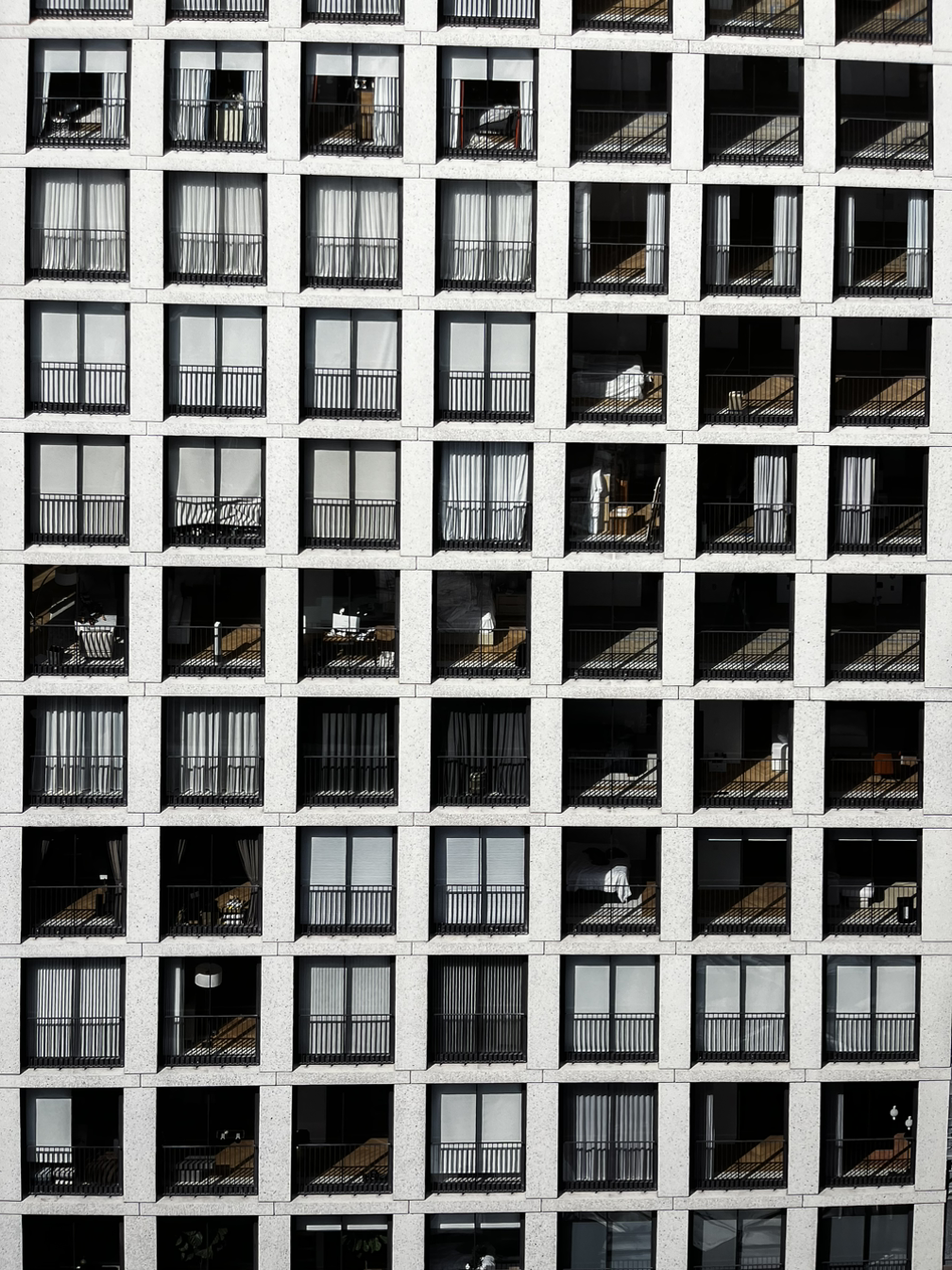 각각의 창은 같은 모양, 같은 크기로 구성되어 있지만, 그 안에서는 서로 다른 사람들의 각기 다른 일상이 펼쳐지고 있다.