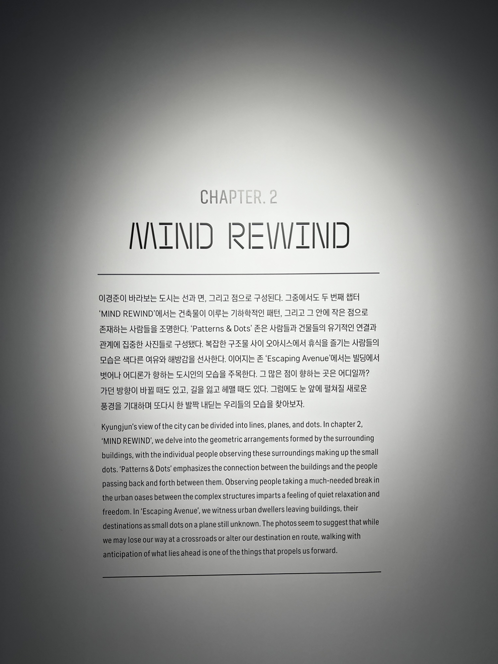 사람들이 유기적인 관계를 맺는 주요 무대인 건물과 그 사이 기하학적인 패턴을 조명하는 MIND REWIND 챕터.