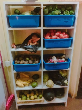 진짜 신선한 과일, 야채가 잔뜩 담겨있는 바구니들.