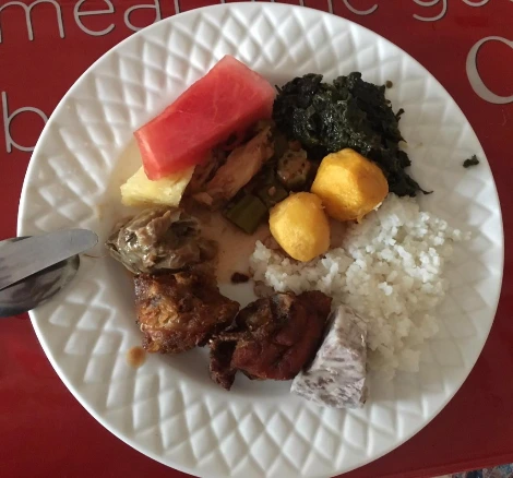 우간다에는 고구마 감자 같은 게 종류가 정말 다양하다. 얌, 포쇼, 마토케 등등등. 여기에 스튜, 양념 고기, 양념 야채를 곁들여 한 접시 음식으로 먹는다.