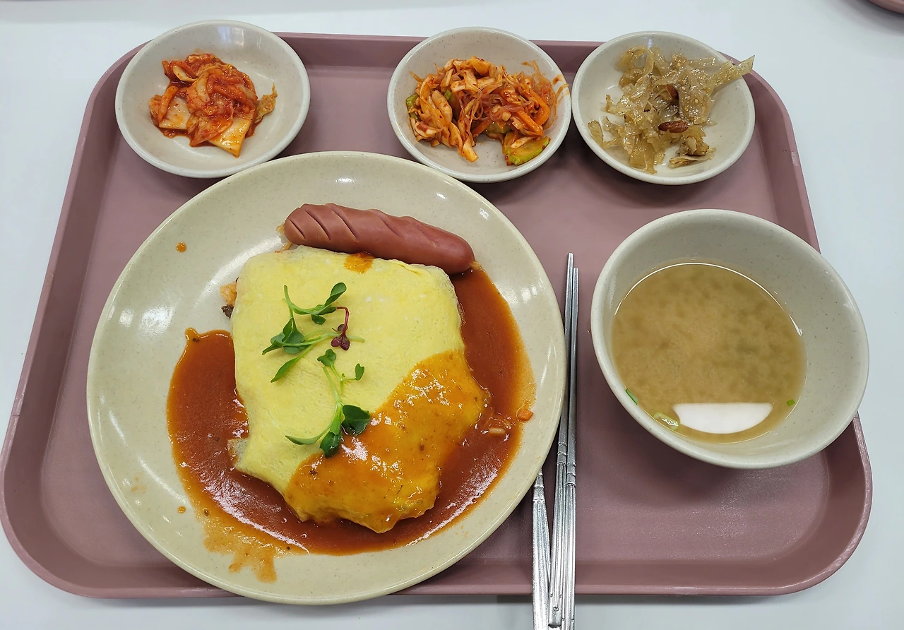 그렇게 우린 서울대학교 학생회관에서 저녁을 먹기로 했다. 식당에 들어서니 메뉴는 두 가지를 선택할 수 있었는데 우리가 선택한 메뉴는 서울대 구성원들은 3천 원, 일반인은 4천 원짜리 메뉴였다. 식당 안에는 학생들도 있었지만 우리처럼 일반인들도 많이 있었다. 메뉴는 미소된장국, 오므라이스, 김치, 진미채조림, 당면과 야채가 섞인 무침이었다. 특별히 맛있다는 느낌은 없었지만 그래도 서울대에 와서 실험도 하고 학생식당에 와서 밥도 먹으니 그야말로 서울대 체험을 제대로 한 기분이었다.