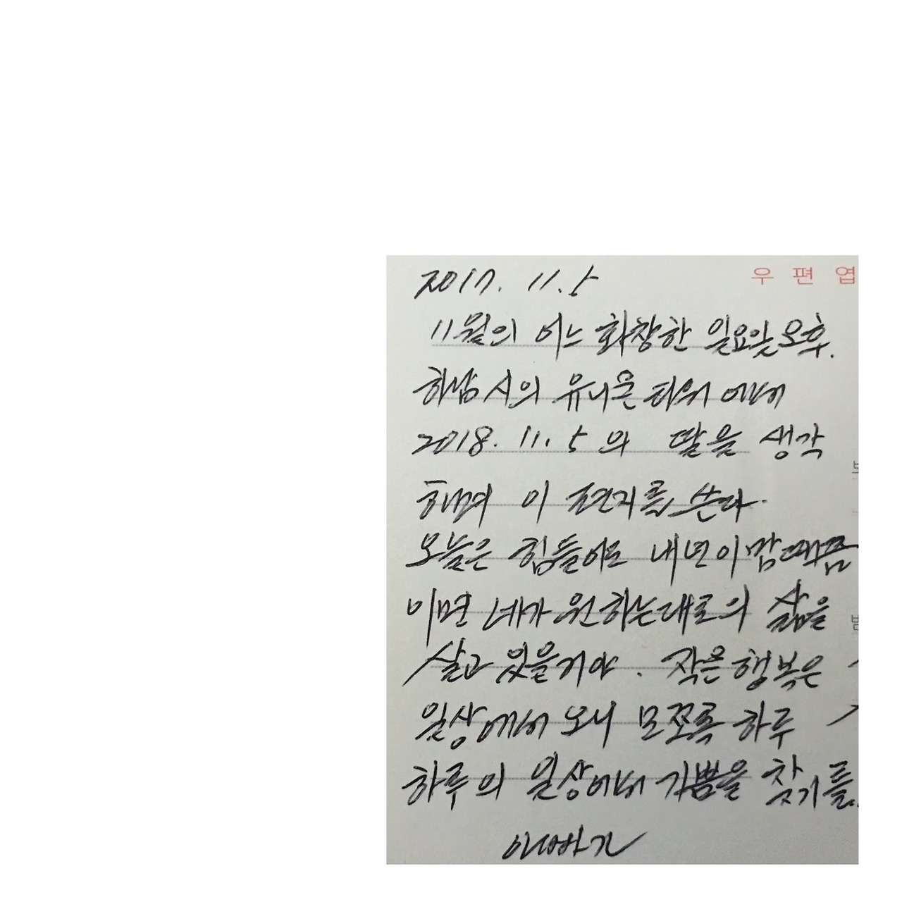마지막 글을 읽은 순간, 아빠는 다시 내가 알던 '나의 아빠'로 돌아왔다. 곁에 있지는 않았지만 마치 아빠가 그 큰 품 으로 한가득 나를 안고 다독여주는 느낌이었다. 최고의 위로였다.