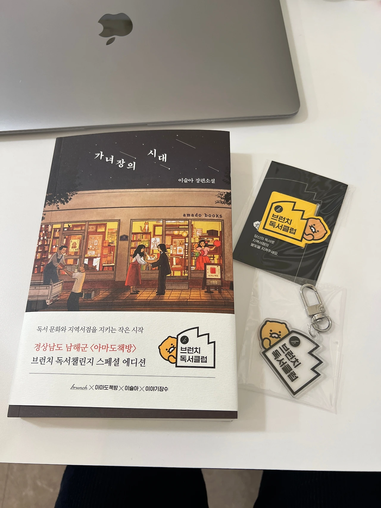 챌린지에 도전하는 1만명의 브런치 유저 중에 당첨자 1000명에게만 지급되는 남해 아마도책방 버전의 ‘가녀장의시대’ 판본도 받아보고, 귀여운 춘식이 키링과 마그네틱북마크도 받아서 기쁨이 두배, 아니 스무배쯤은 되는 것 같다!!