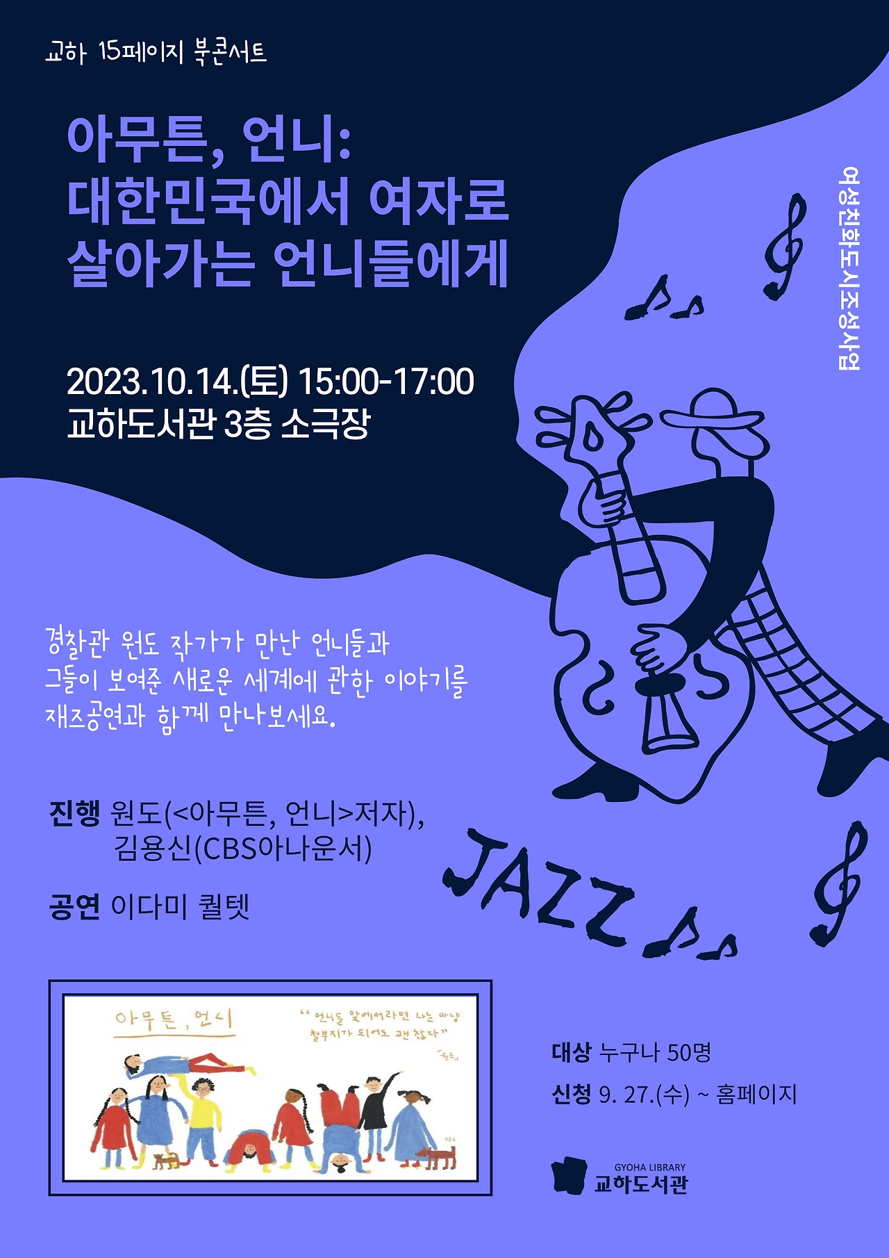파주 교하도서관 3층 소극장에서 <아무튼, 언니> 북토크를 진행합니다.