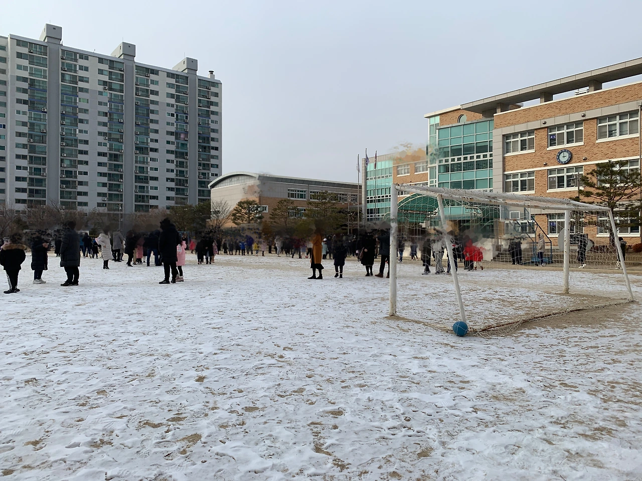 집을 나서서 학교로 갔다. 운동장에는 눈이 쌓여 있었고 바람이 차가웠다. 이미 많은 아이들과 부모들이 운동장 가득 줄을 서 있었다. 텔레비전에서만 보았던 이 장면 속에 우리가 서 있게 될 줄은 몰랐다. 왜 우리와는 별개라고 생각했을까? 이렇게 바로 앞까지 와 있었는데..... 다들 별 말이 없이 조용하기 그지없었다. 그 와중에 아이의 친구들이 이름을 부르고 손을 흔들었다. 아이들은 그저 해맑았다.