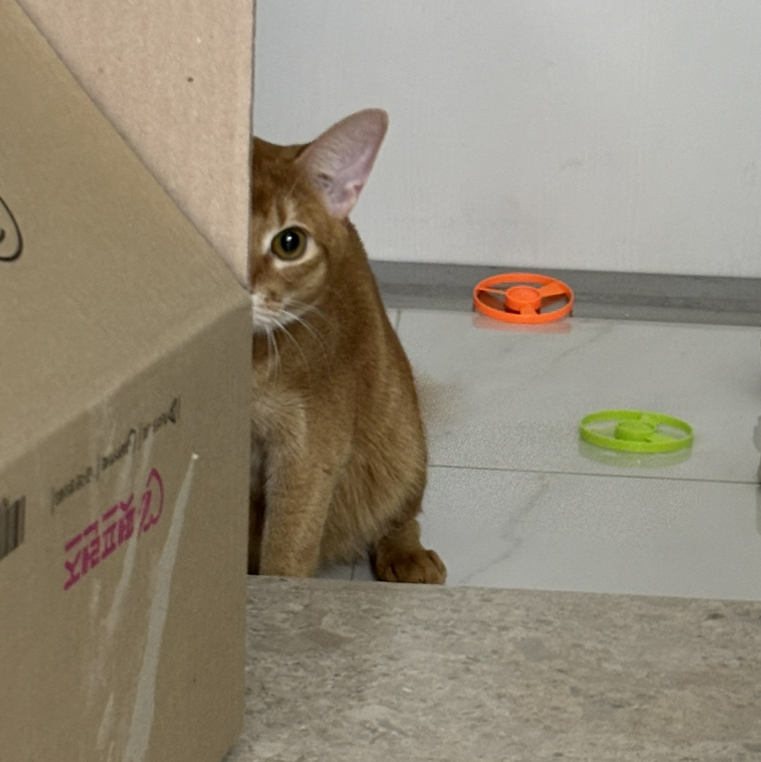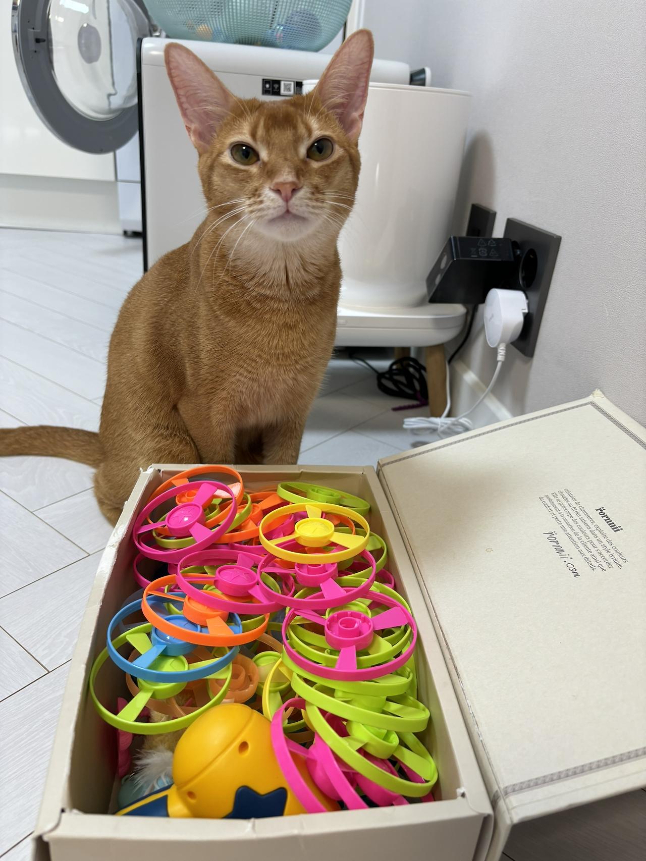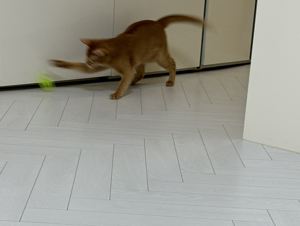 오전에 해야 할 일과를 마치고 이제 막 커피 한 모금을 마시려는데, 혼자 뛰어놀던 힝구가 다가왔다. 좌식 테이블 옆에 언제나 힝구가 애정하는 장난감 상자를 놓아두는데, 힝구가 그 상자 주변을 배회하며 울기 시작했다. 나는 이 빡빡한 육묘 일과에 한숨 쉴 틈도 없이 상자를 열었고, 힝구는 신이 난 듯 경쾌하게 뛰어가 자리를 잡는다. 냥이콥터를 세팅하기 시작했고, 엄폐물에 몸을 숨긴 힝구를 위해 끝도 없이 프로펠러를 날렸다. 스나이퍼가 된 것처럼, 집사는 몸을 숨겨가며, 현란한 손짓으로 힝구의 흥을 돋웠다.
