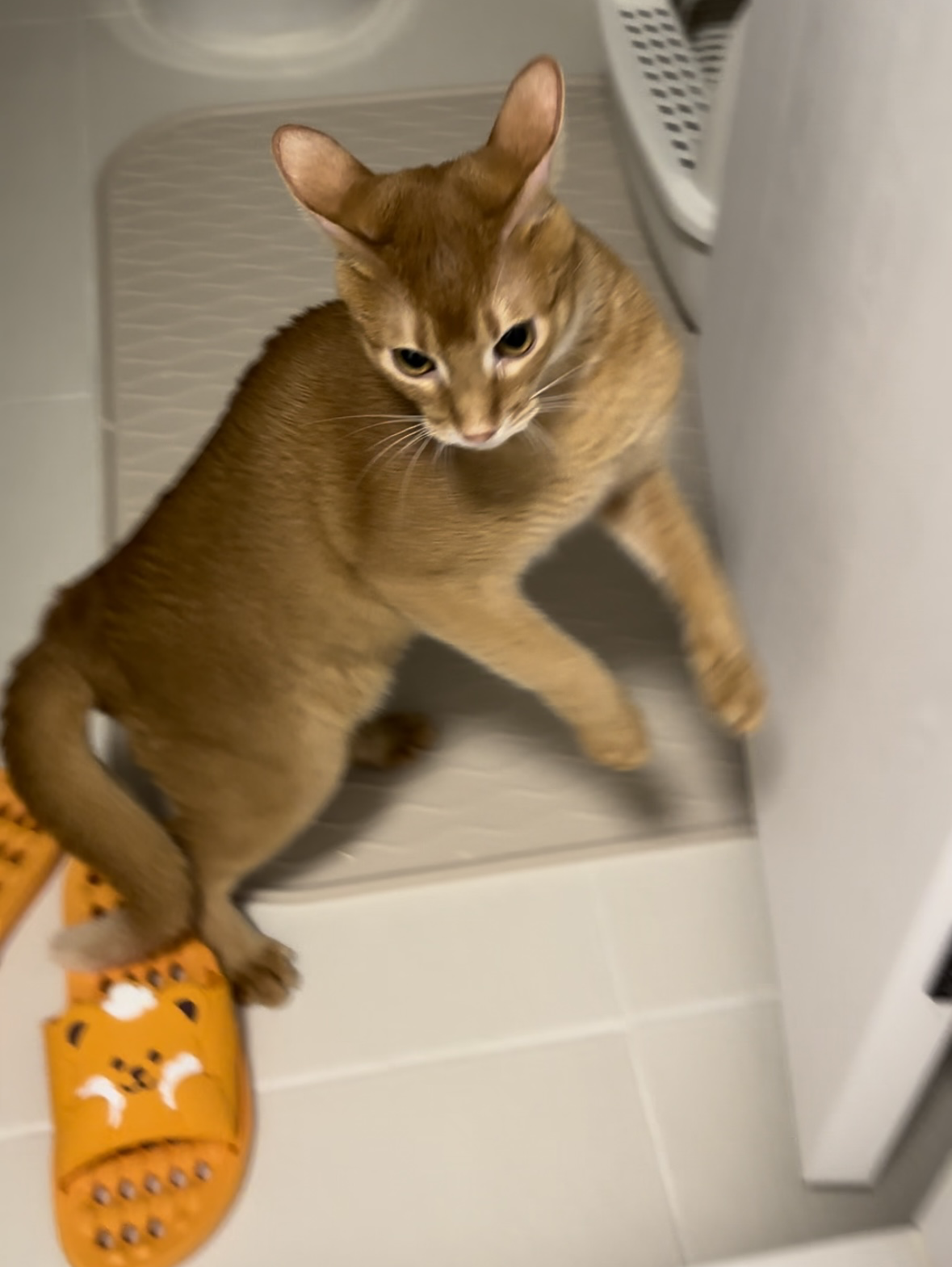 눈 한번 깜빡이지 않고 나를 바라보던 힝구의 눈빛을 외면하지 못하고, 또다시 힝구와의 숨바꼭질을 준비하며, 움직이기 시작했다. 몸을 숨겼다, 일으켰다 하며 힝구를 도발하자, 힝구의 엉덩이가 실룩이기 시작한다. 이제 때가 되었군, 싱크대 하부 장 뒤에 숨어서 힝구를 놀라게 할 타이밍을 기다리는데, 이번에는 힝구가 한발 빨랐다. 힝구의 기습은 성공적이었다. 진심으로 깜짝 놀란 내 모습에 다시 마징가 힝구가 되었고, 더욱 높아진 텐션의 뜀박질이 이번에는 화장실로 이어졌다. 아, 또.