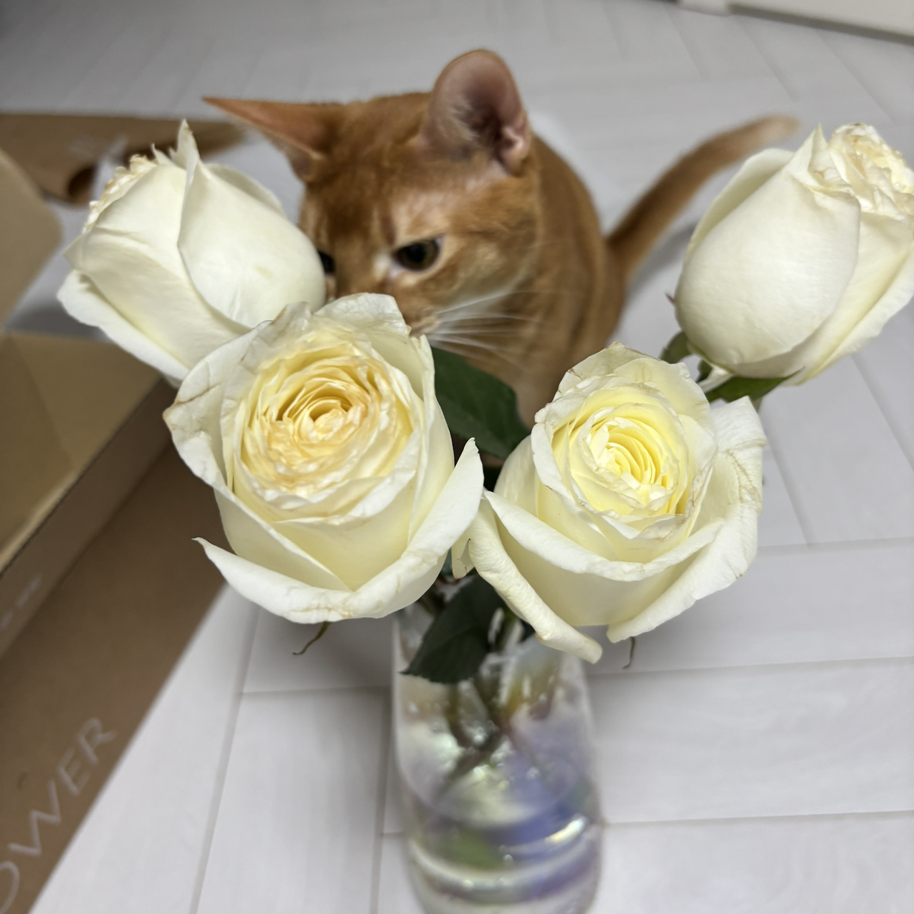 연이은 한파 속 배송 중에 발생할 수 있는, 냉해 방지를 위해, 내가 신청한 날짜보다 꽃이 일찍 도착했다. 크리스마스를 위한 꽃이었는데, 지정한 날짜보다 일찍 도착해 아쉬웠지만, 꽃을 산 것은 만족스러웠다. 무엇보다도 우리 집 고양이, 힝구가 이렇게 마음에 들어 할 줄은 몰랐기 때문이다. 상자를 열기도 전, 킁킁거리며, 냄새를 맡기 시작한 힝구가 궁금해 죽겠다는 듯, 오두방정 난리가 났다. 그렇게 상자를 떠나지 못하는 모습에, 아직 걱정되었던 향 부분이 안심되었다.