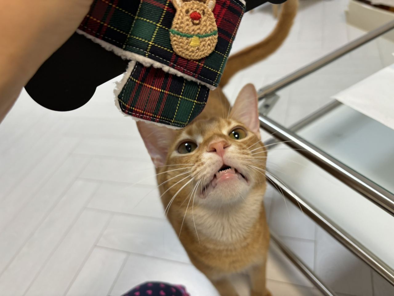 연휴를 앞두고 미리 준비해 놓은, 크리스마스 콘셉트의 고양이 목도리를 급히 꺼냈다. 12월 초, 혹시 배송이 늦어질까 봐 급히 구매했음에도, 너무 이른 쇼핑에 잠시 깜빡하고 말았다. 추석 때처럼 이 물건은 그저 집사의 사심 가득한 쇼핑이지, 힝구에게는 귀찮은 선물일 뿐이라는 것을 집사는 알고 있었다.