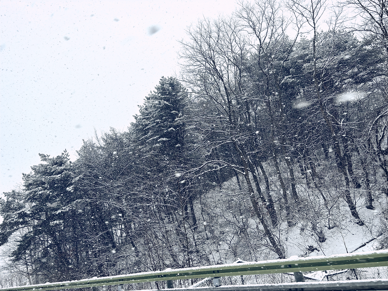 그 이후에도 눈 내리는 풍경은 계속됐다. 푹푹 발이 파묻힐 만큼 내린 눈을 보니, 졸음휴게소에 잠시 정차한 사이 결국 눈 뭉치를 만들어 함께 한 지인에게 던지지 않을 수 없었다.