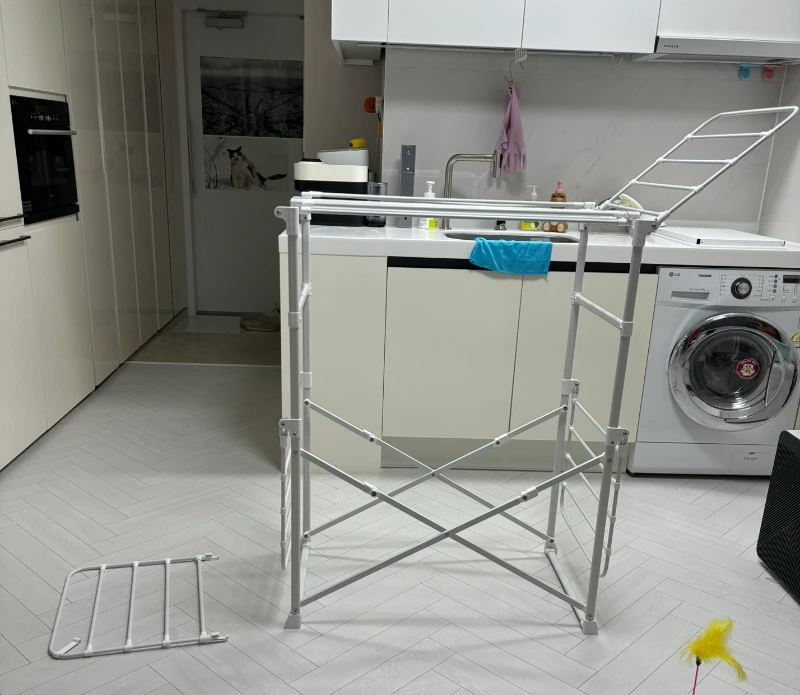 힝구와 함께 살기 시작한 이후로 기존에 사용하던 빨래건조대는 벽 틈 사이에 넣어둔 채 새로운 빨래 건조 방법을 생각해 내야 했다.
