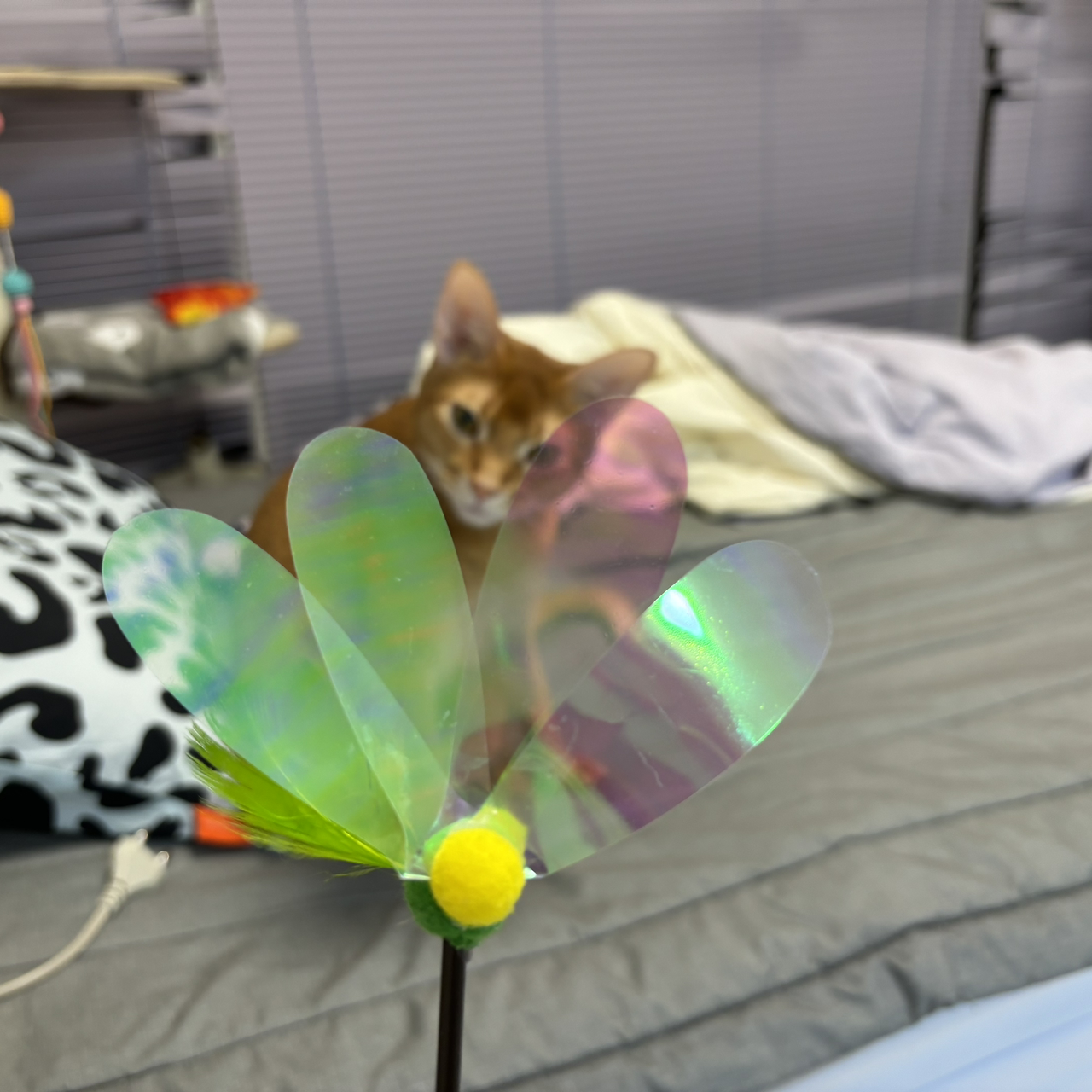 반려동물 세계에서도 쿠팡의 로켓배송처럼 빠른 배송이 가능하다. 일정 시간까지 주문하면 당일 밤 12시까지 제품을 받아볼 수 있어 성격 급한 집사는 빠르게 제품을 배송받았고, 그 늦은 그 밤에도 힝구의 반응은 폭발적이었다. 실리콘 재질로 된 이 제품은 확실히 쥐꼬리의 움직임과 유사했다. 집사의 핸들링이 더해진다면 힝구의 사냥본능을 확실히 자극할 듯했다. 힝구는 지난밤의 놀이가 재밌었는지, 이른 아침부터 바구니에 살짝 걸쳐져 있던 쥐꼬리 낚싯대를 혼자서도 잘도 가지고 놀기 시작하더니, 자신이 생각하는 안전지대인 화장실로 그 낚싯대를 물고 가 자신의 사냥 성공을 만끽하는 모습까지 보여줬다. 그 후에도 하루 종일 힝구의 이 놀이는 몇 번이고 반복되었다.
