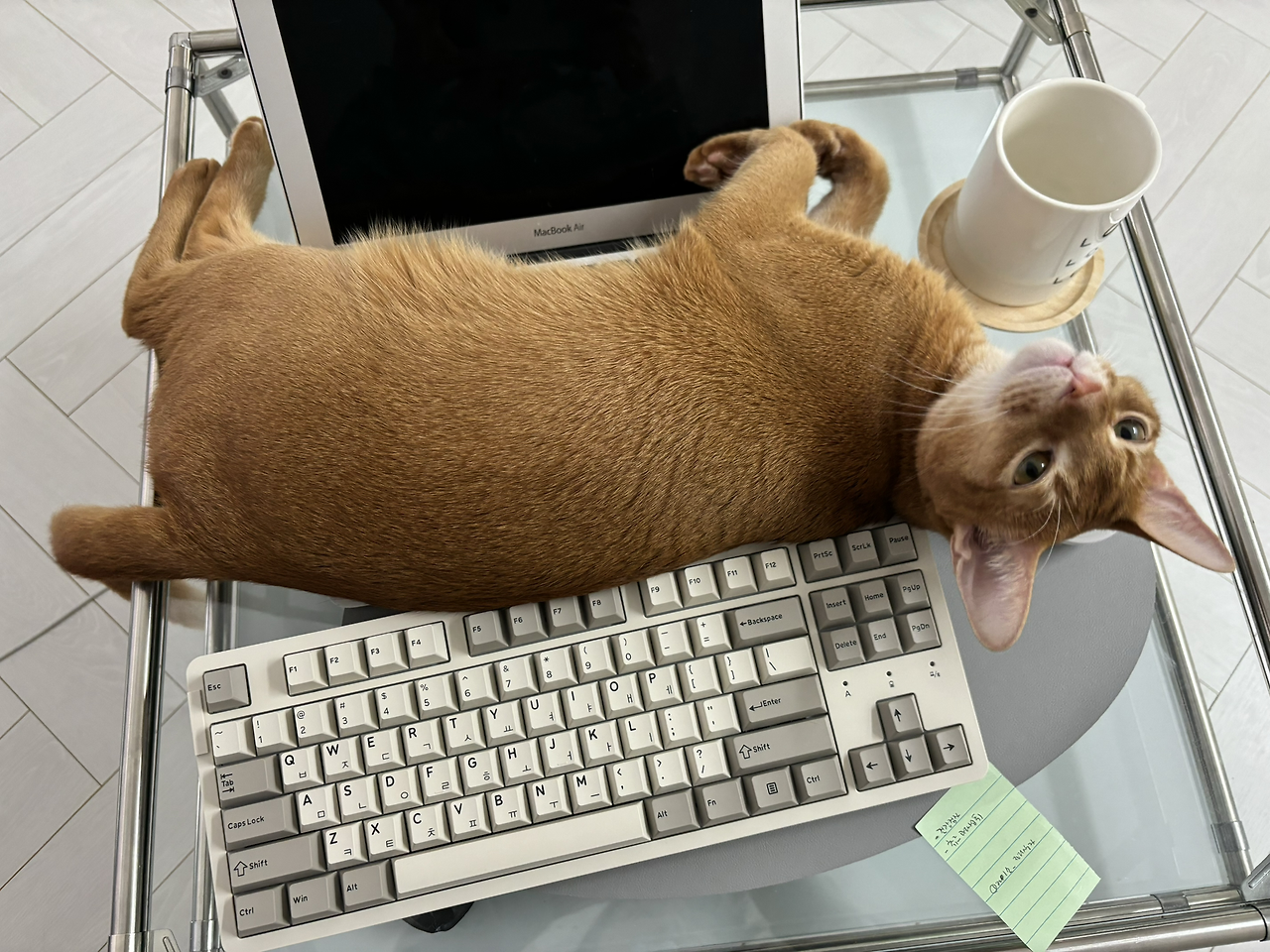 기저귀 찬 아기의 똥똥한 뒤태가 주는 귀여움, 또 우리의 영원한 아기판다 푸바오, 꼭 삼각김밥을 연상시키는 그 뚠뚠한 뒤태만으로도 우리는 푸공주에게 빠져버리고 말았다. 귀여움 그 자체, 치명적 동글동글한 뒤태는 우리의 마음을 무장해제 시키고 몽글몽글하게까지 만든다는 공통점이 있다. 우리 집에도 내 마음을 자꾸 몽글몽글하게 만드는 고양이 한 마리가 있다. 아비시니안(고양이 종)이 호리호리한 몸매를 가졌다지만, 오렌지 브라운 빛 털이 감싼 동글동글한 엉덩이만큼은 충분히 빵실하게 집사의 마음을 움직이게 한다.