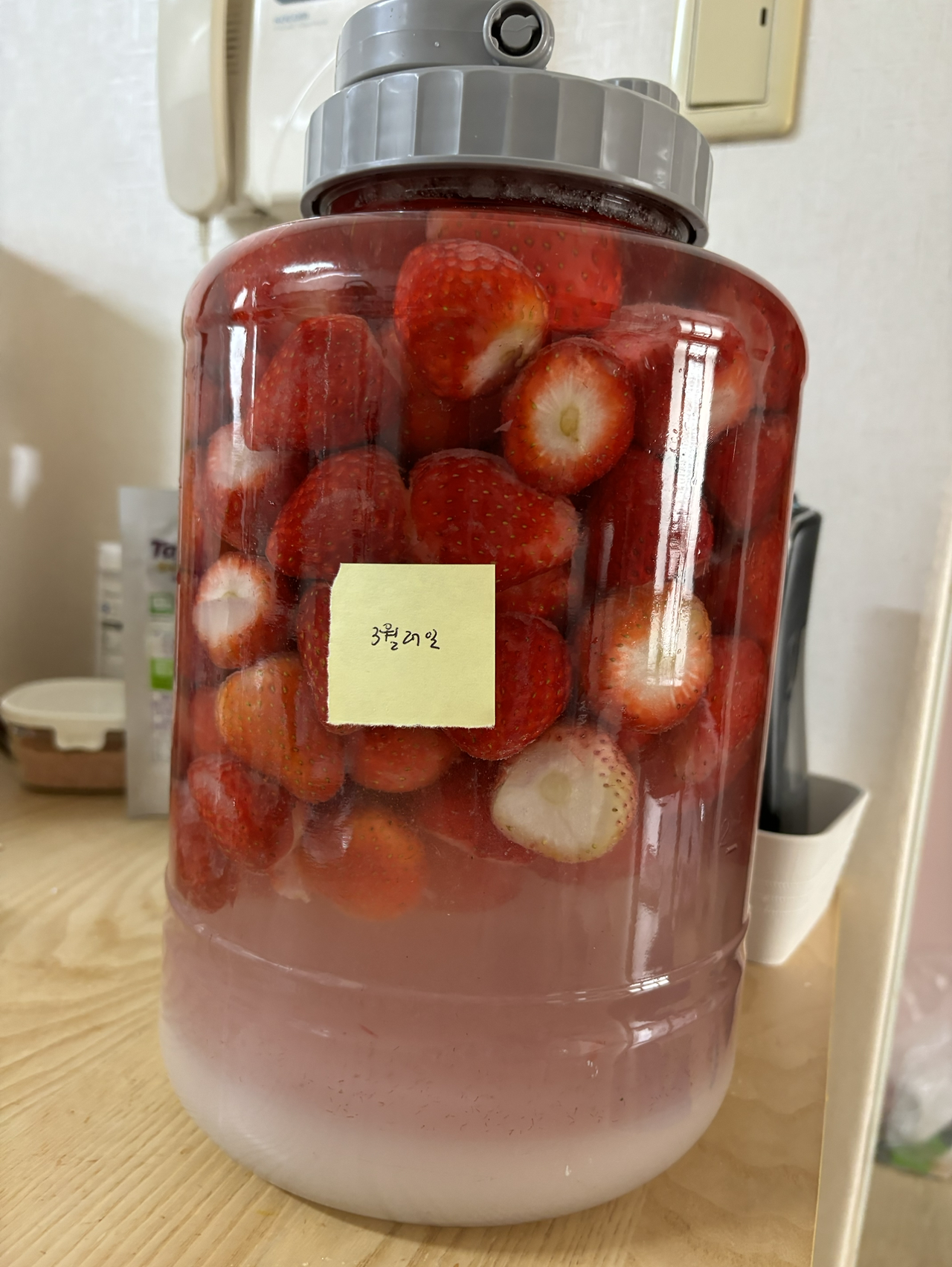 마침내 몇 년 동안 마음속으로 생각만 했던 한 가지 일을 해내니 개운함과 함께 기대감이 들었다. 100일 뒤, 7월 5일이 되면 과실을 걸러 내고 또 조금 더 시간을 들여, 숙성의 시간을 보내고 나면, 올여름에는 시원하게 딸기주 하이볼을 맛볼 수 있겠구나. 그러면 내 소중한 인연들과 함께 한잔 기울여야지.