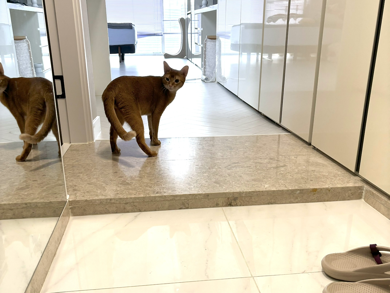 나보다 앞서기 시작한 힝구가 현관 바닥에 냅다 드러누워 버렸다. 아 집사의 판단은 섣불렀구나. 힝구는 아직 마음의 준비가 안 되었는데, 현관문에 딱 붙어 내 길을 막던 힝구가 이번에는 내가 오도 가지도 못하게 누워서도 바삐 움직이며 내 움직임을 차단한다.