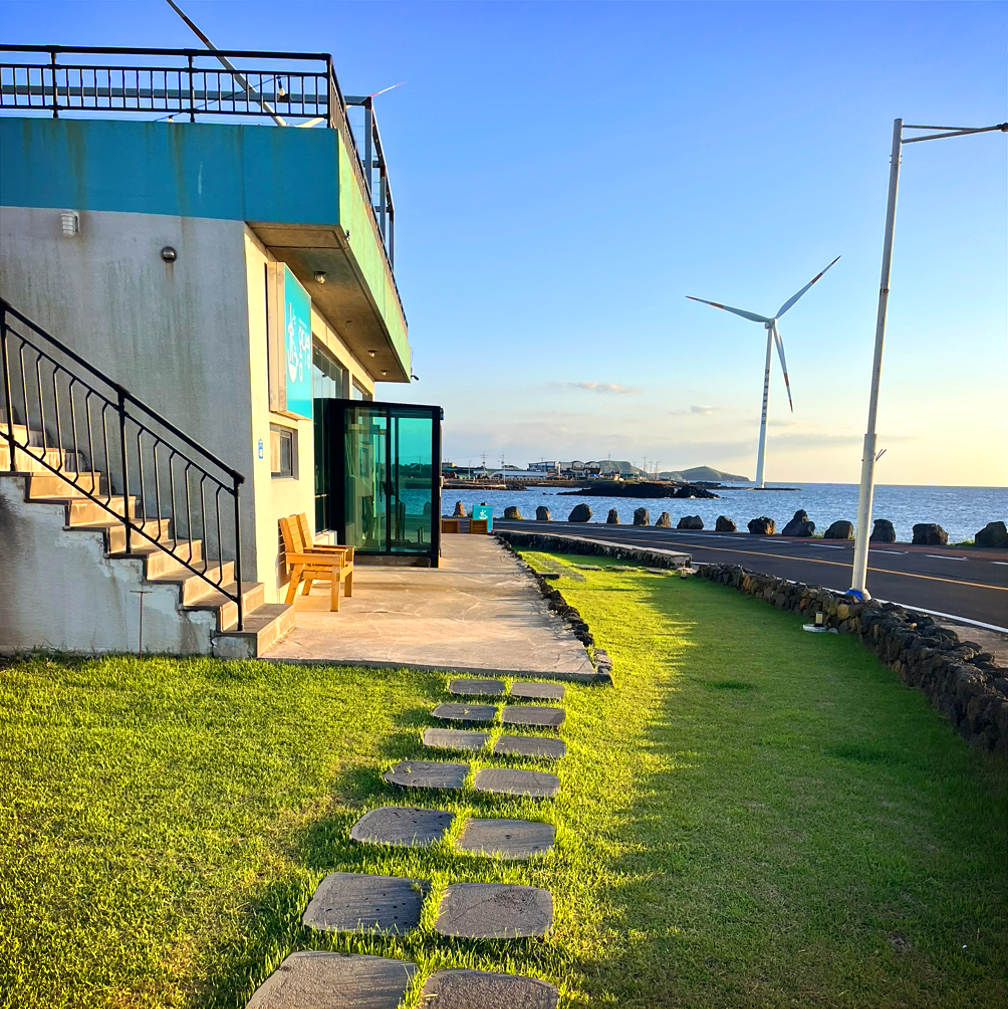 귓가에 엄청난 바람 소리가 들려온다. 고개를 들어 올리자, 내 시선을 사로잡은 것은 거대한 풍차, 풍력발전기가 돌아가고 있었다. 그 옆으로 수평선을 향해 해가 지는 풍경이 인상적이다. 오늘도 맑은 날씨 덕분에 해가 지는 모습이 선명하게 보인다. 점점 하늘이 붉게 물들어 간다.