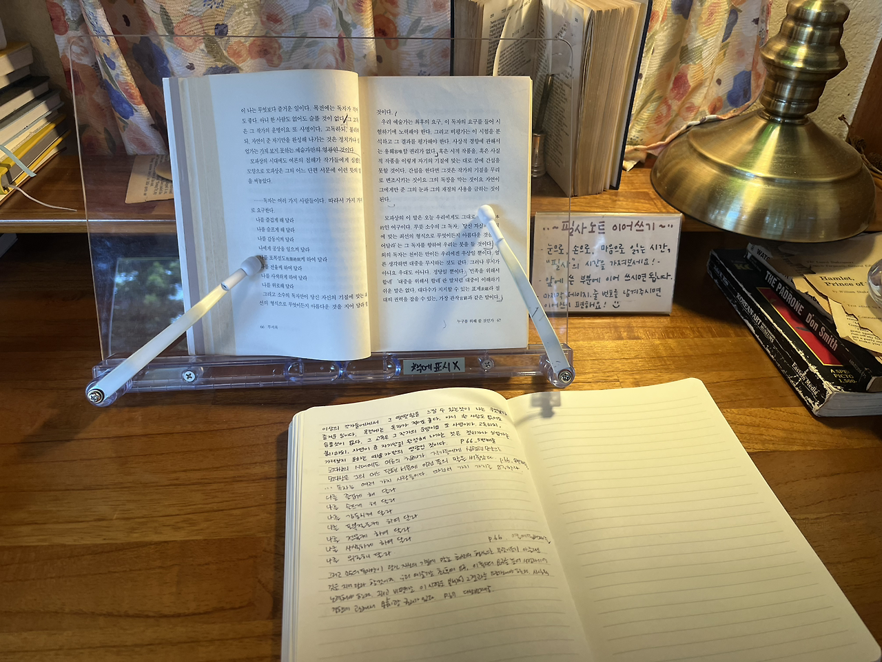 두 번째로 인상적이었던 코너는 필사노트 이어쓰기였다. 지정된 책을 방문객들이 일정한 단락씩 필사하는 것인데, 방명록처럼 내가 다녀왔다는 인증과 함께, 좋은 글귀를 만날 수 있는 소리소문만의 특별한 이벤트였다.