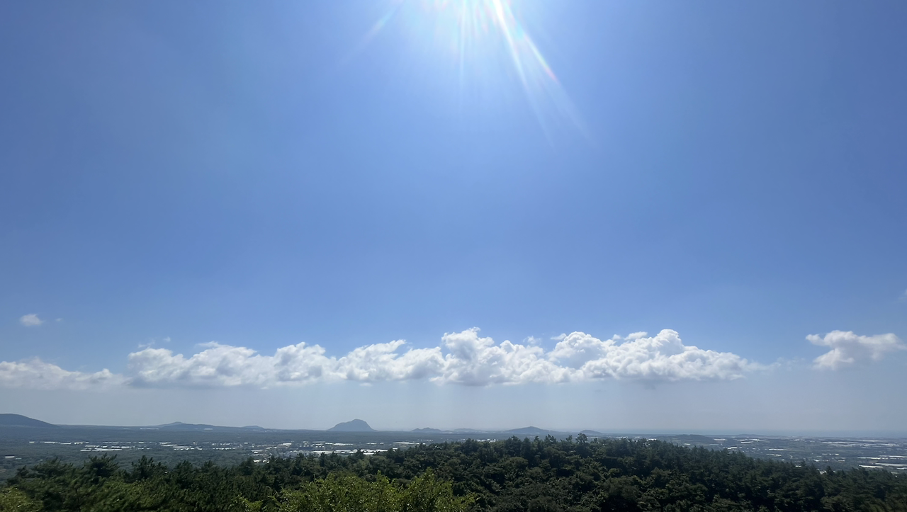 내 제주 2주 살기의 대부분 나날은 그날그날의 기분에 따라 정해졌다. 숙소 사장님의 추천으로 숙소 근처의 저지오름을 급히 오른 날, 저 멀리 보이는 한라산 위로 정말 둥둥 떠 있는 구름의 모습이 인상적이었다. 정말 제주 하늘의 구름은 둥둥 떠 있다는 느낌이 든다. 하늘 위에 살짝 걸쳐져 있어 금방이라도 잡힐 것 같은 느낌이다.