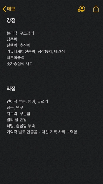 경영학 전공자답게 나의 SWOT도 분석해보고, 머릿속에 떠다니던 생각들을 하나씩 정리했다. 그리고 스몰스텝의 세줄 일기를 통해 나에게 큰 영향을 주는 요인도 계속 살펴보고 있다.