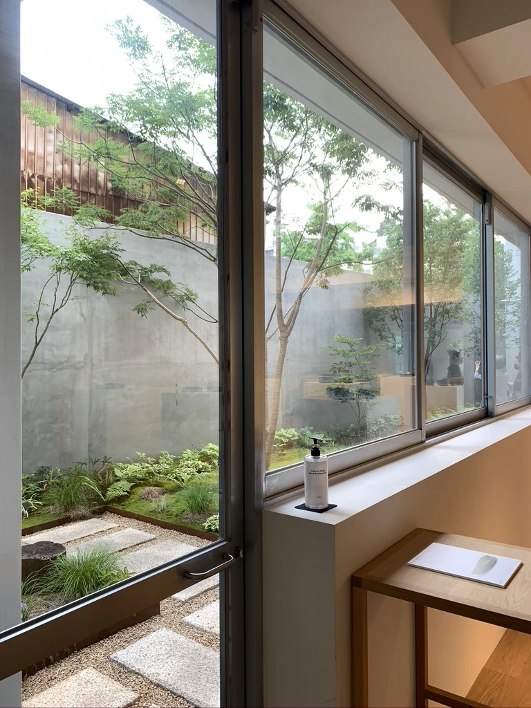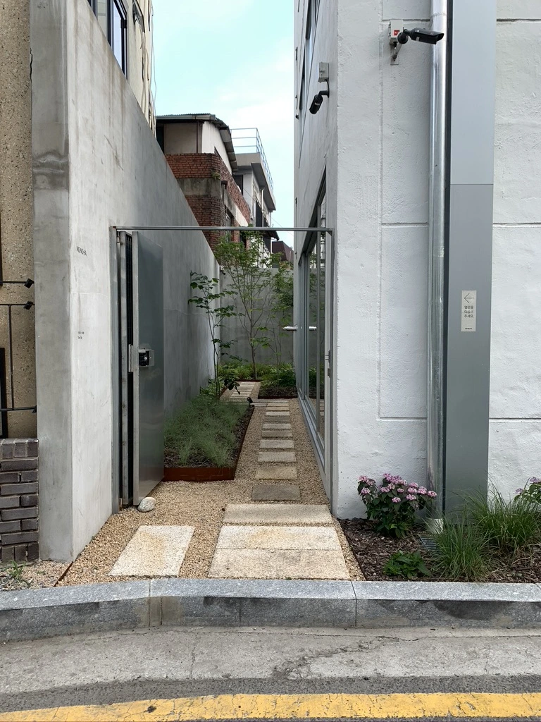 기대감을 조성하는 입구의 철문을 지나고 통로를 지나 야외정원을 맞았다. 가지런한 돌을 하나씩 총총히 밟으며 들어가는 입구, 그리고 돌담과 건물 사이의 정원. 하늘거리는 섬세한 나무가 너무 잘 어울리는 정원이었다. 주말의 정원은 사진작가와 모델들이 너무 많았던 관계로 못 찍었다.