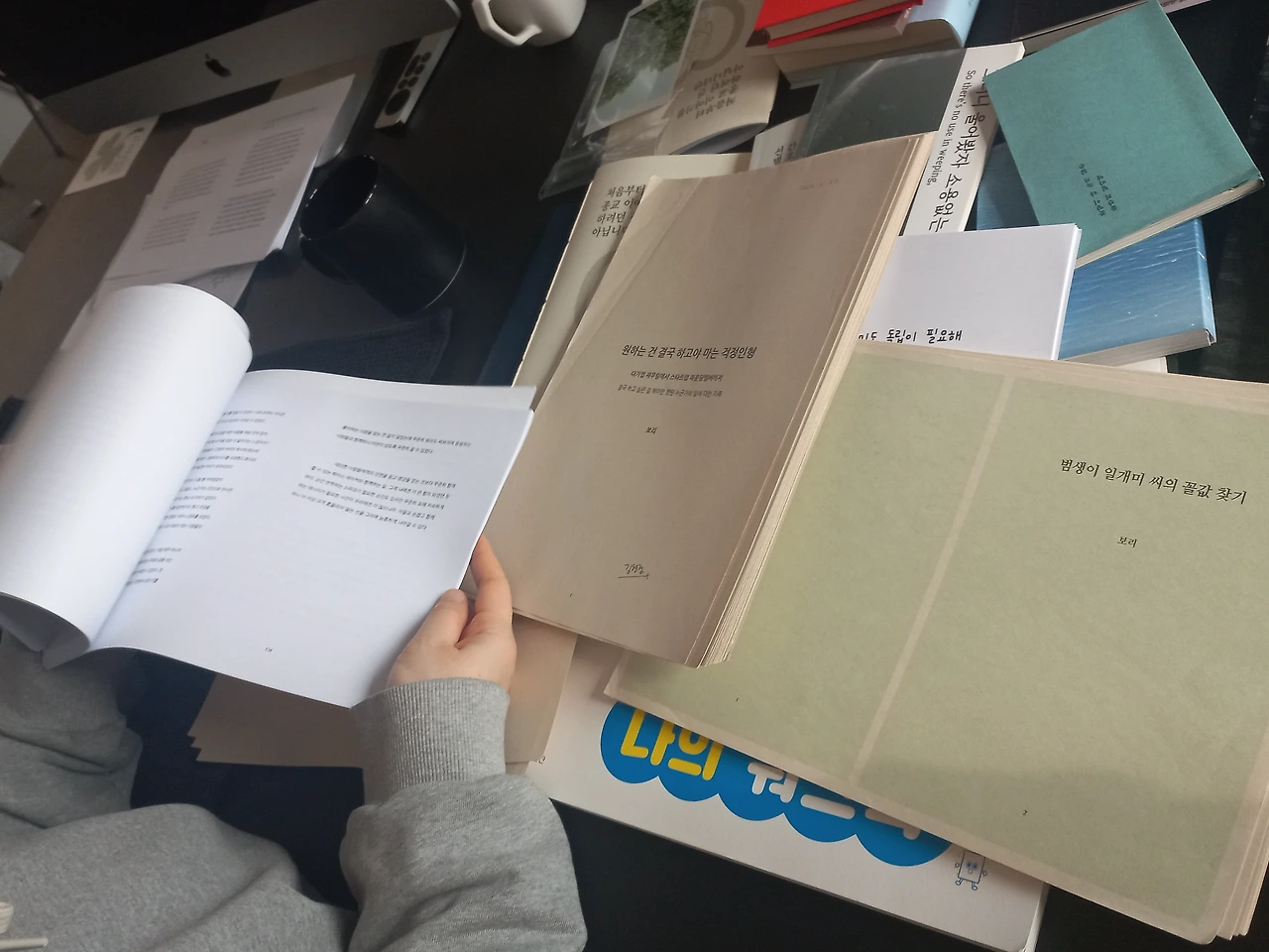 가볍게 써보려 했는데 쓰다 보니 어느새 글이 점점 많아졌고 출력해 보니 제법 책 같았다. 처음엔 이걸 진짜 할 수 있을까 막막했는데 고민을 공유하고 나의 기획의도를 반복해서 정리하고 설명할수록 안개가 걷히는 느낌이 들었다. 언젠가 완성본을 들고 있는 내 모습이 흐릿하게나마 보이는 것 같다.