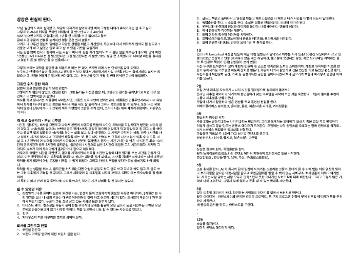 계획이라 생각하니 뭔가 팍팍한 느낌이다. 팔딱거리는 에너지를 불어넣고 싶어 형식을 바꾸어보았다. 시점은 1년 후의 나. 계획한 대로 갭이어를 보낸 내가 어떤 모습인지 그려보는 것으로!