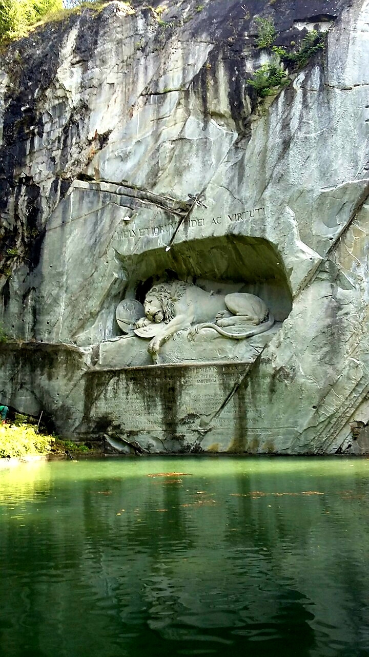 호프 교회는 첨탑이 건물에 비해 심하게 커 보였다. 멀리서 보면 첨탑만 보여서 처음엔 교회 건물은 없는 줄 알고, 내부의 화려한 장식들이 어둠 속에서 천천히 드러났다. 초 두 자루에 불을 붙여 촛대에 꽂고 이번 여행을 안전하고 무사히 마칠 수 있도록 하느님에게 기도했다. 빈사의 사자상은 남편이 첫 목적지로 정한 곳, 정말 사자가 곧 죽어가는 절망적인 표정을 잔뜩 품고 있어서, 보는 순간 기쁨과 즐거움이 일시 정지된다. 시간을 뚫고 인간의 흔적이 묵직하게 박혀있는,,, 죽음으로 자신들의 의무를 완수한 스위스 용병들이 예술과 예술가를 통해 불멸의 기억으로 살아남아 있다. 바티칸 교황청도 사랑하는 그들이 사자상 속에서 울부짖고 있는 건 아닐까.